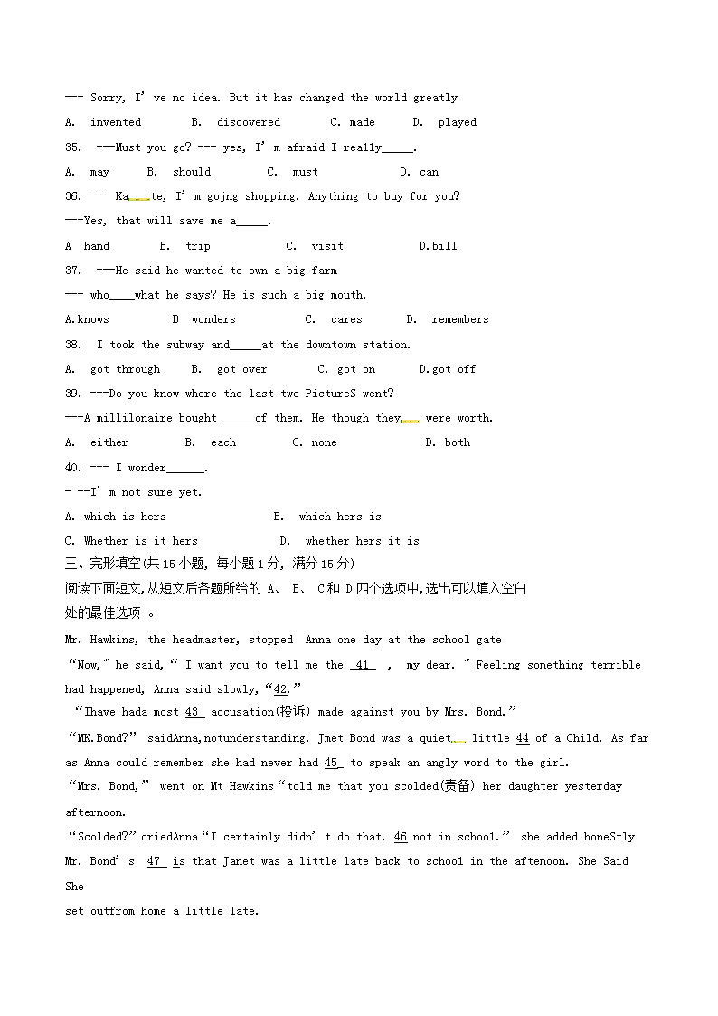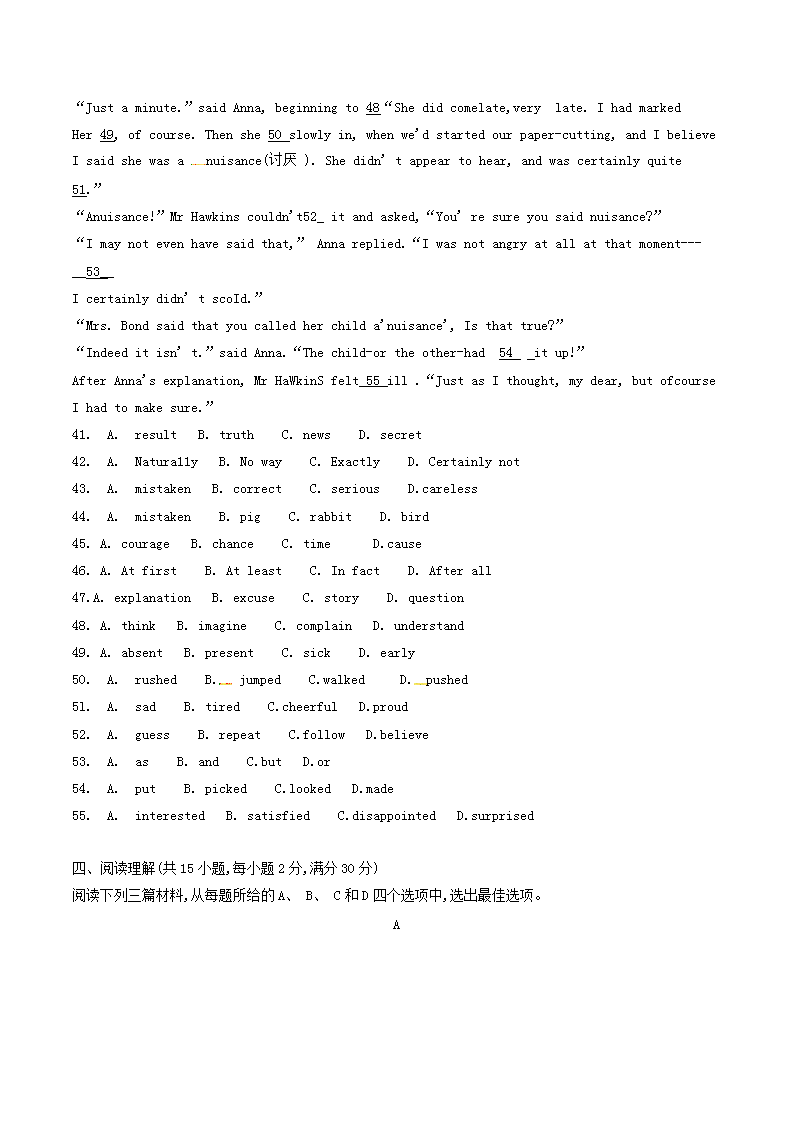 【文档名称】 2018年湖北省武汉市中考英语真题及答案(Word版).doc