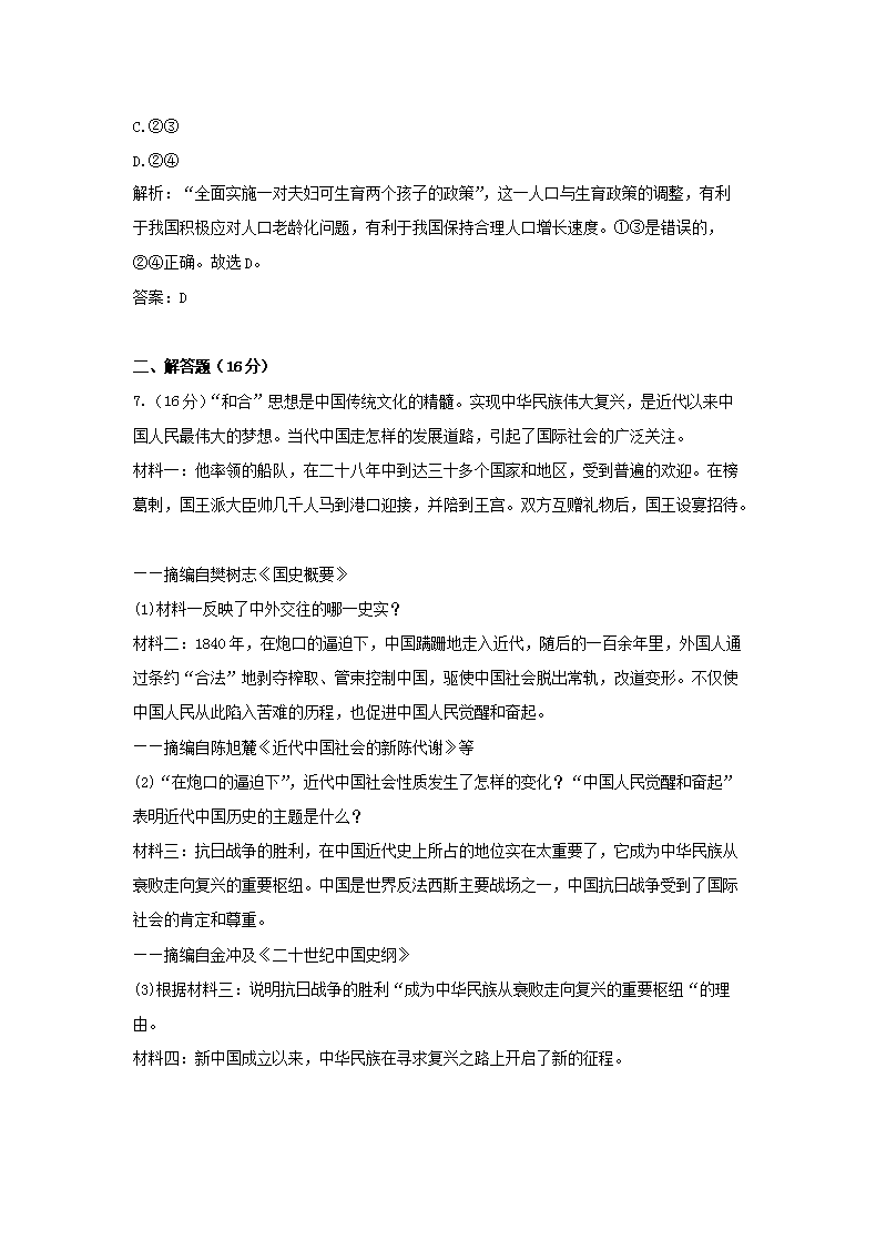 【文档预览】 无忧考网整理发布2016浙江省温州市中考历史真题及答案(Word版),前五页预览如下: