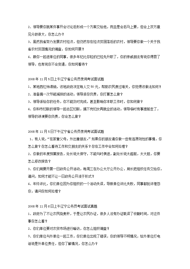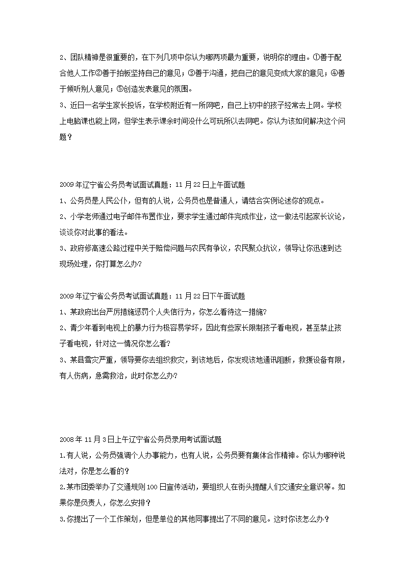 【文档名称】 辽宁省事业单位招聘历年面试真题(Word版).doc