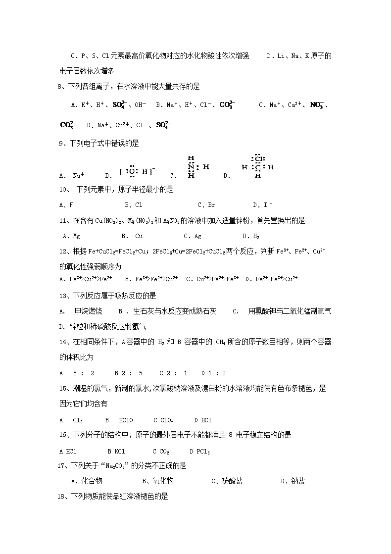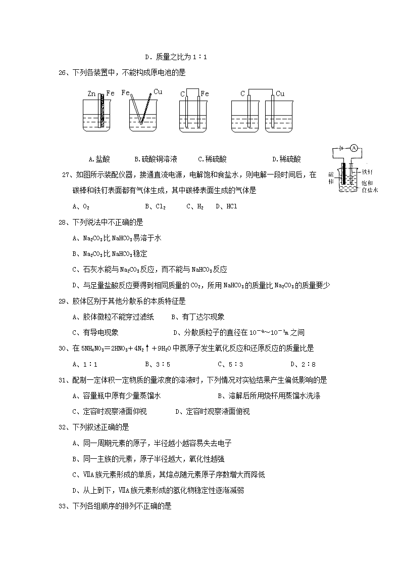 【文档名称】 2013年天津普通高中会考化学真题及答案(Word版).doc