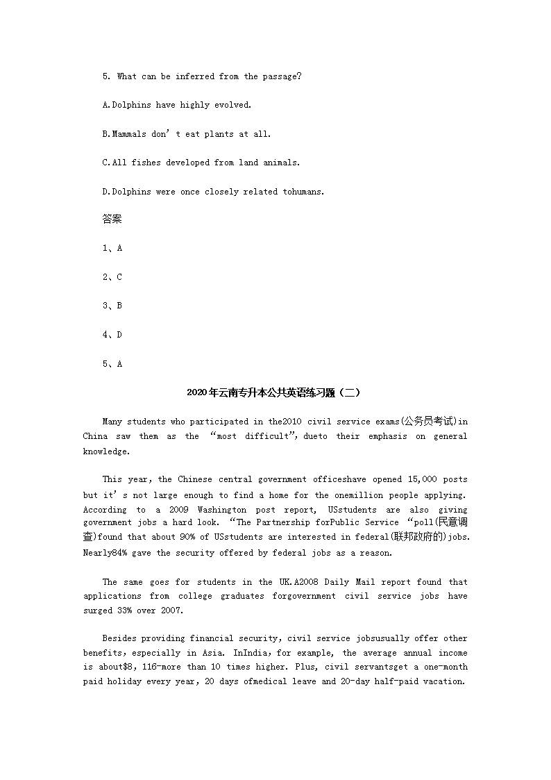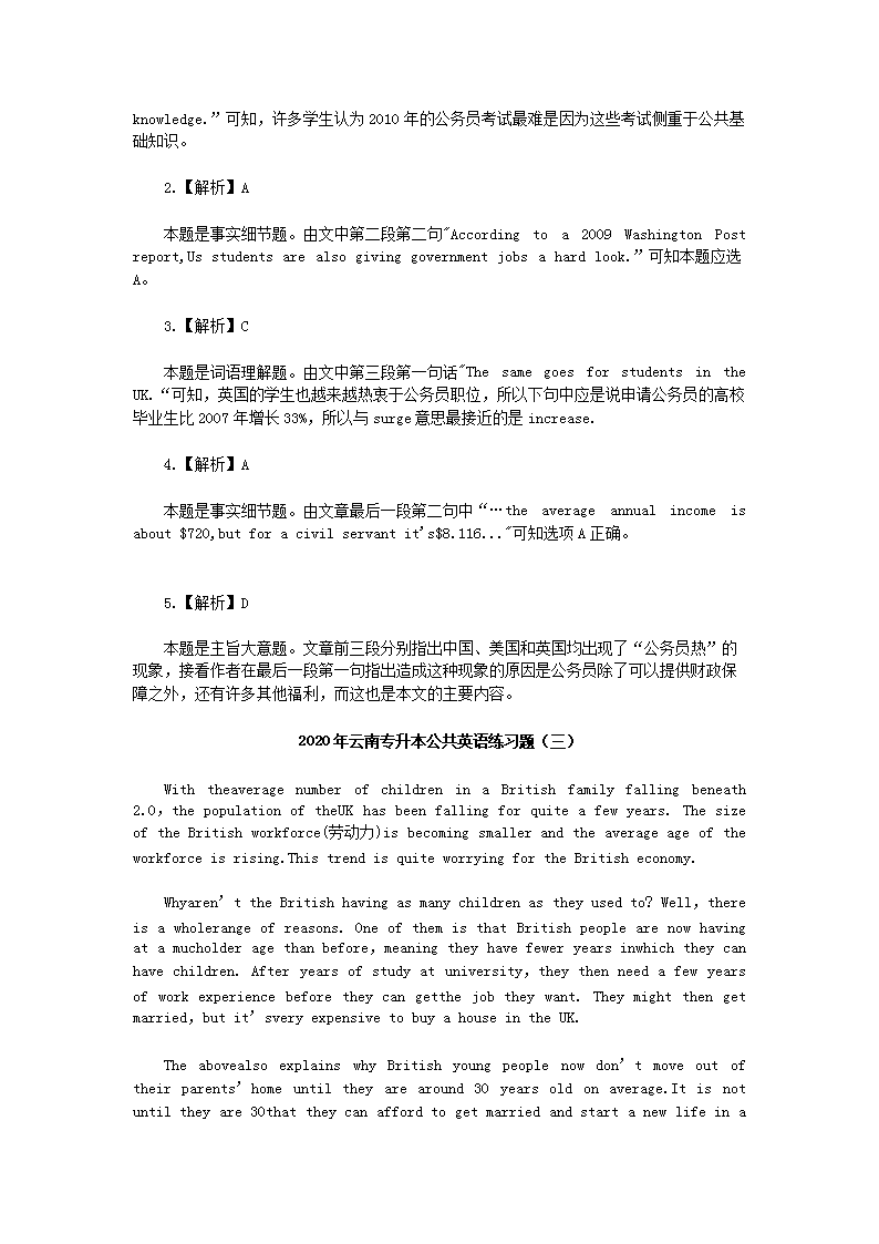 【文档预览】 无忧考网整理发布2020年云南专升本公共英语练习题三套(Word版),前五页预览如下: