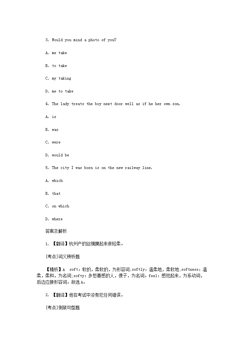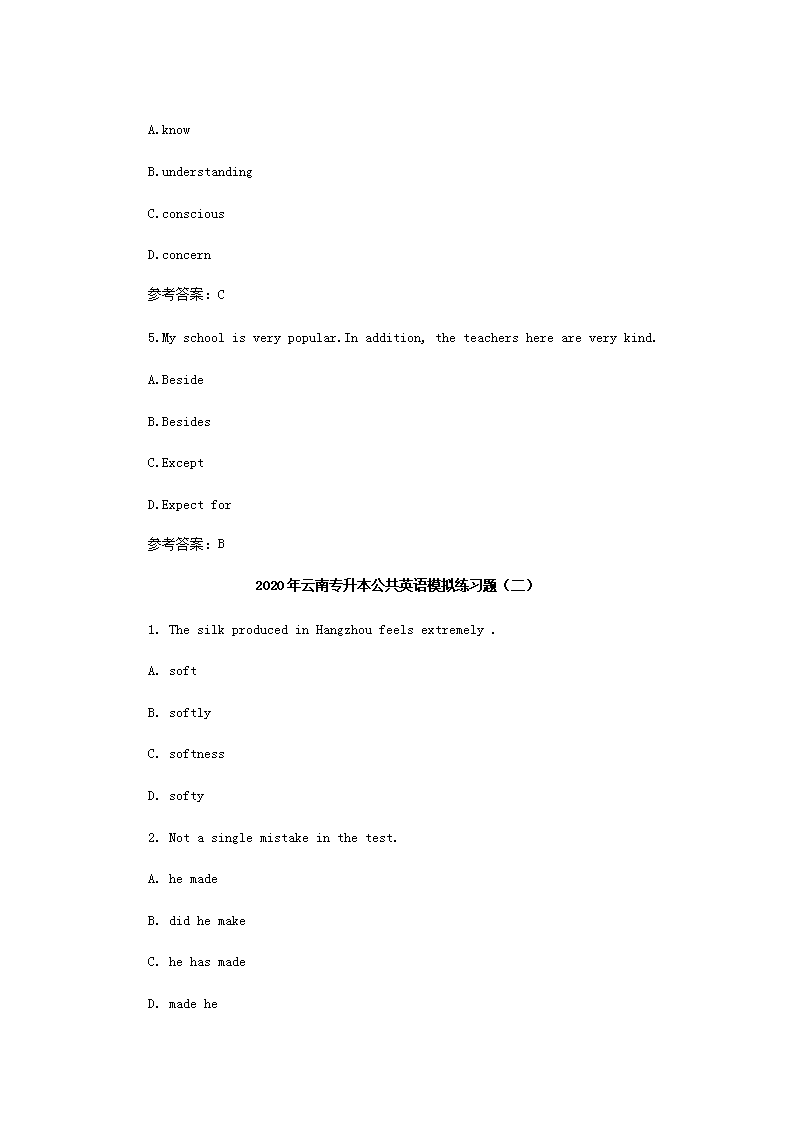 【文档预览】 无忧考网整理发布2020年云南专升本公共英语模拟练习题三套(Word版),前五页预览如下: