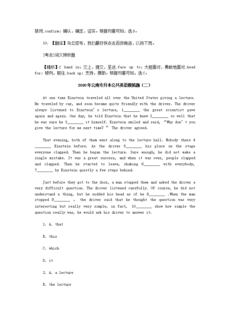 【文档名称】 2020年云南专升本公共英语模拟题三套(Word版).doc