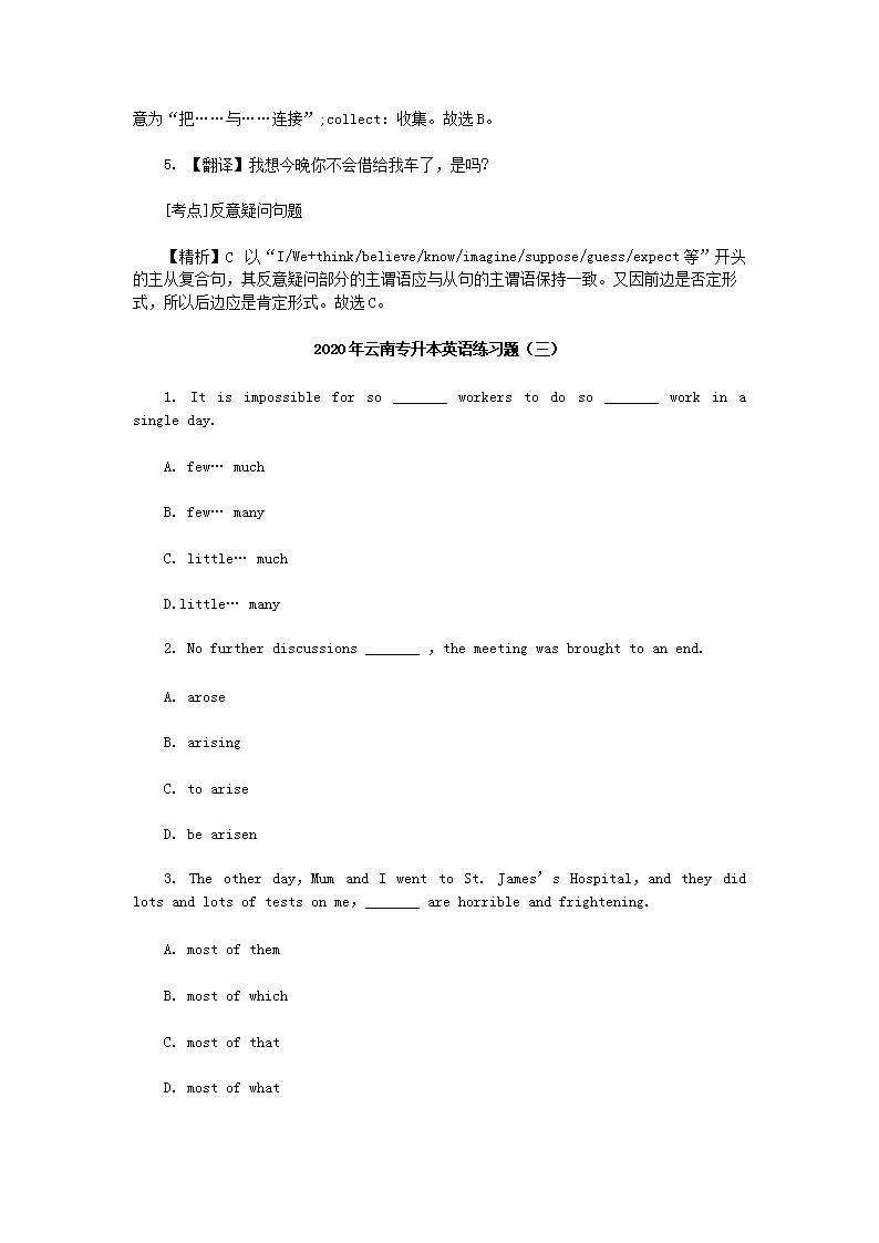【文档名称】 2020年云南专升本英语练习题三套(Word版).doc