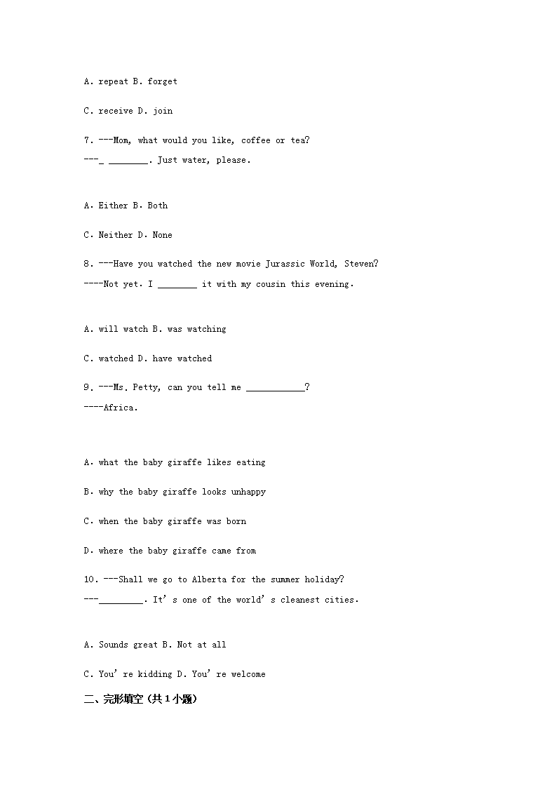 【文档名称】 2015浙江省温州市中考英语真题及答案(Word版).doc
