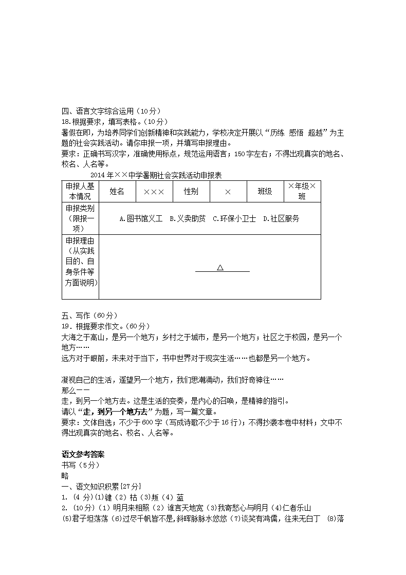 【文档预览】 无忧考网整理发布2014浙江省温州市中考语文真题及答案(Word版),前五页预览如下: