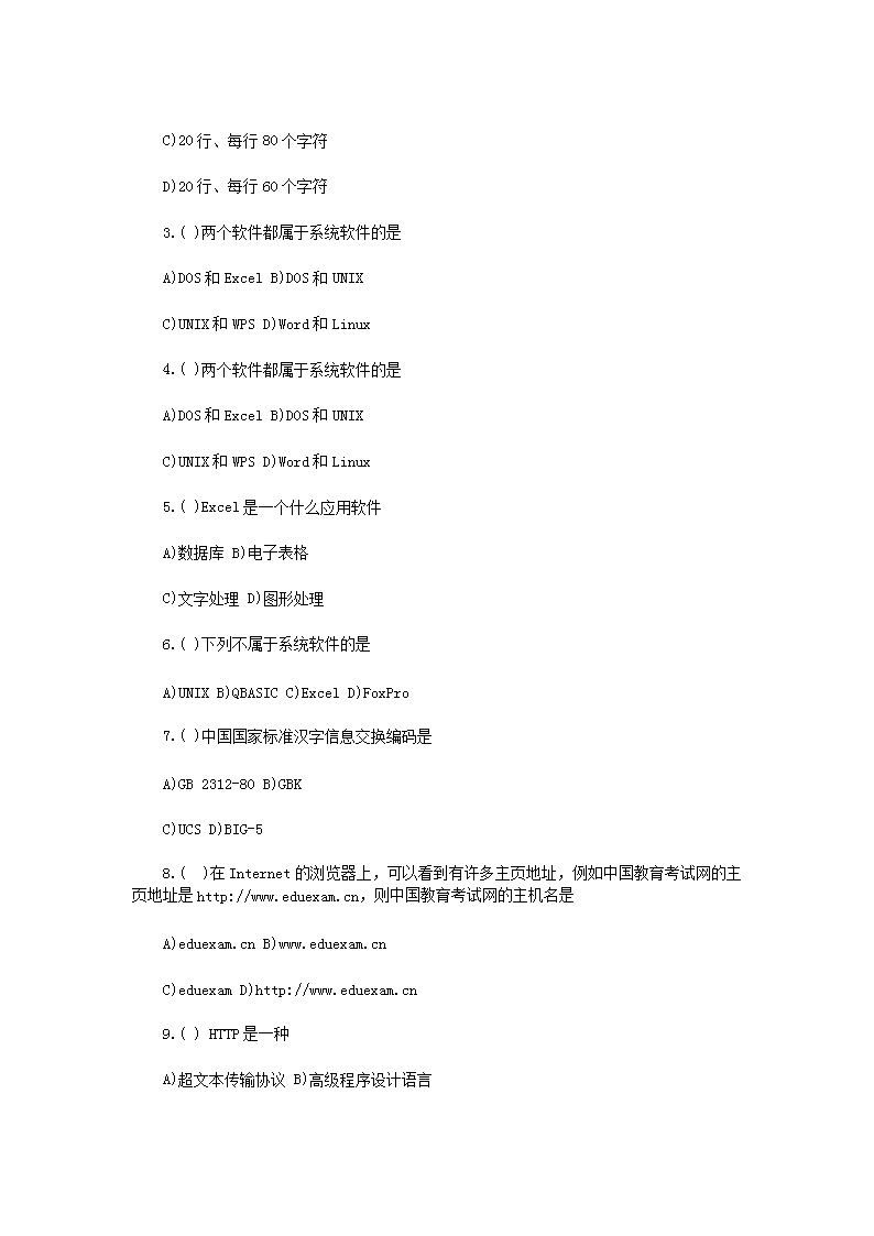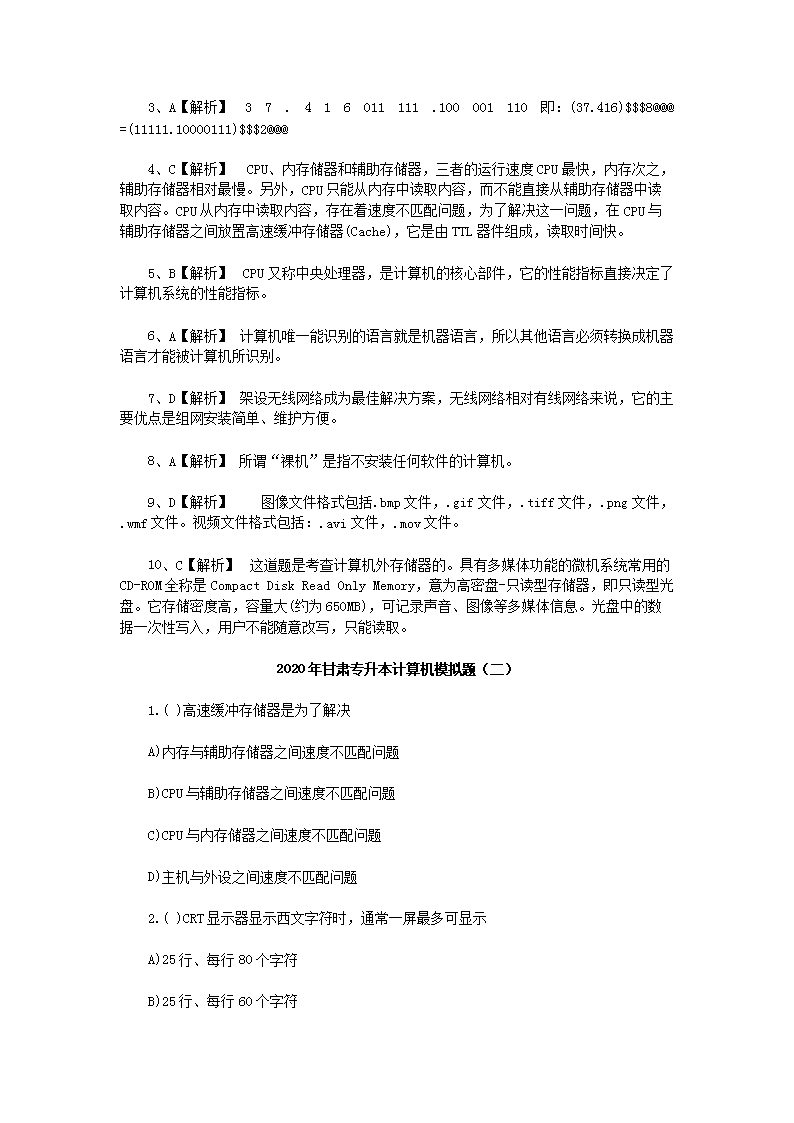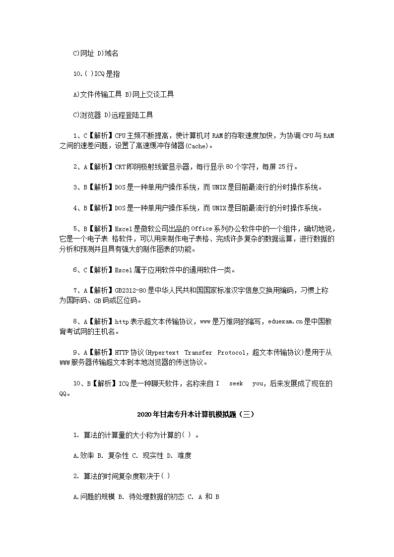 【文档名称】 2020年甘肃专升本计算机模拟题三篇(Word版).doc