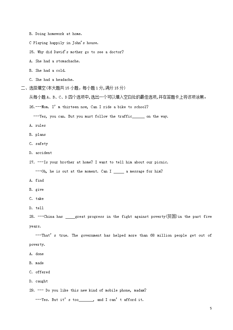 【文档名称】 2018年湖北省襄阳市中考英语真题及答案(Word版).doc