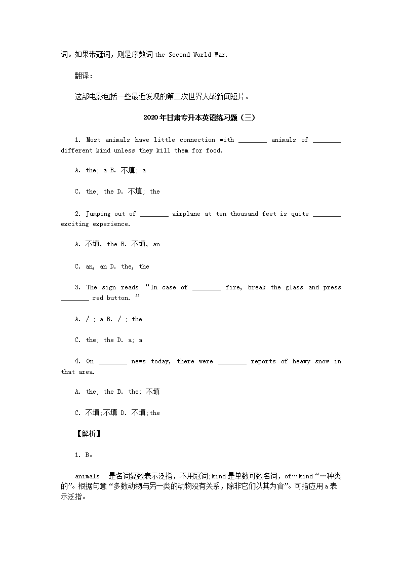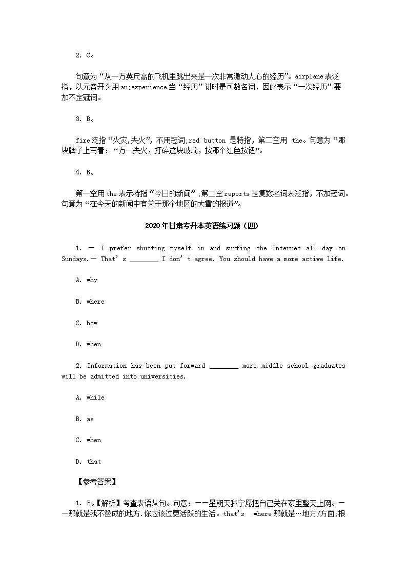 【文档名称】 2020年甘肃专升本英语练习题四套(Word版).doc