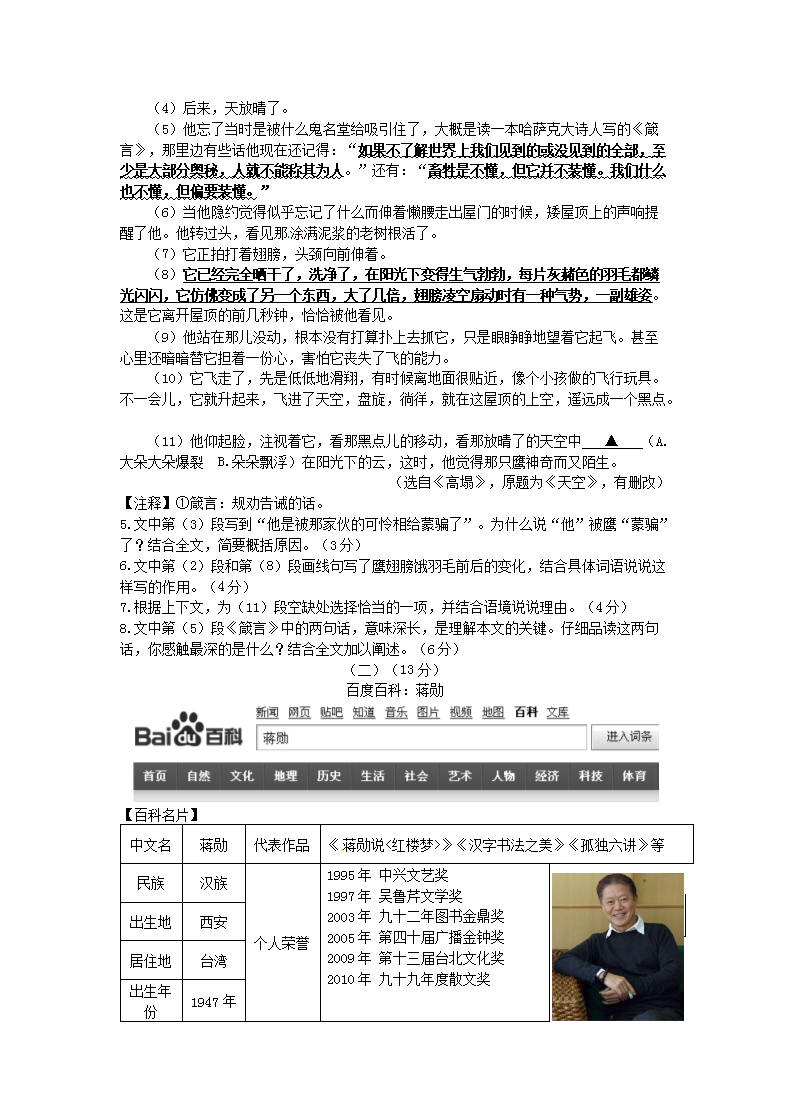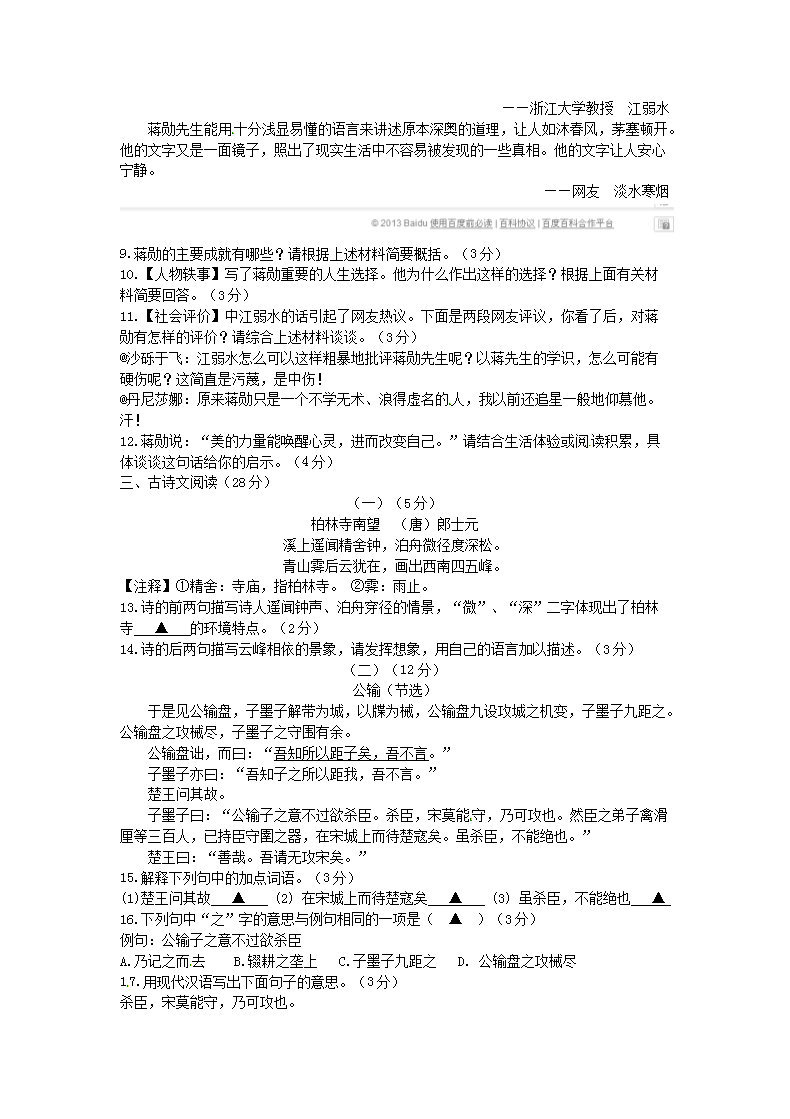 【文档预览】 无忧考网整理发布2013浙江省温州市中考语文真题及答案(Word版),前五页预览如下: