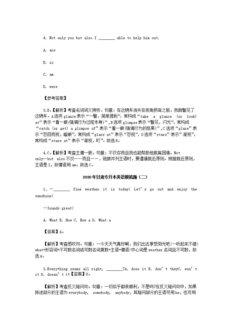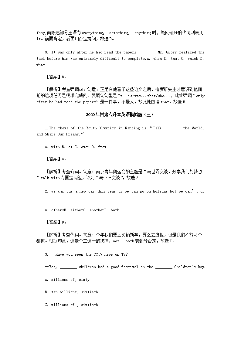 【文档名称】 2020年甘肃专升本英语模拟题三套(Word版).doc