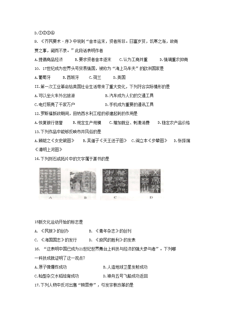 【文档名称】 2008年山东普通高中会考历史真题及答案(Word版).doc