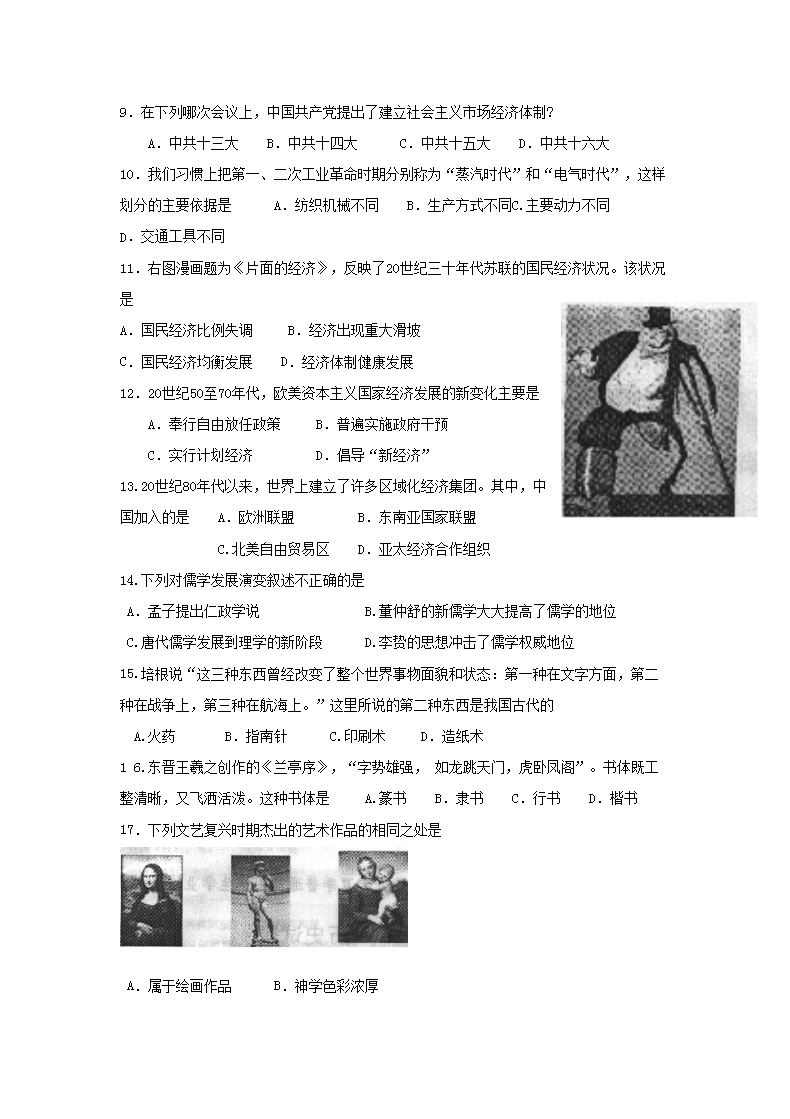 【文档预览】 无忧考网整理发布2009年山东普通高中会考历史真题及答案(Word版),前五页预览如下: