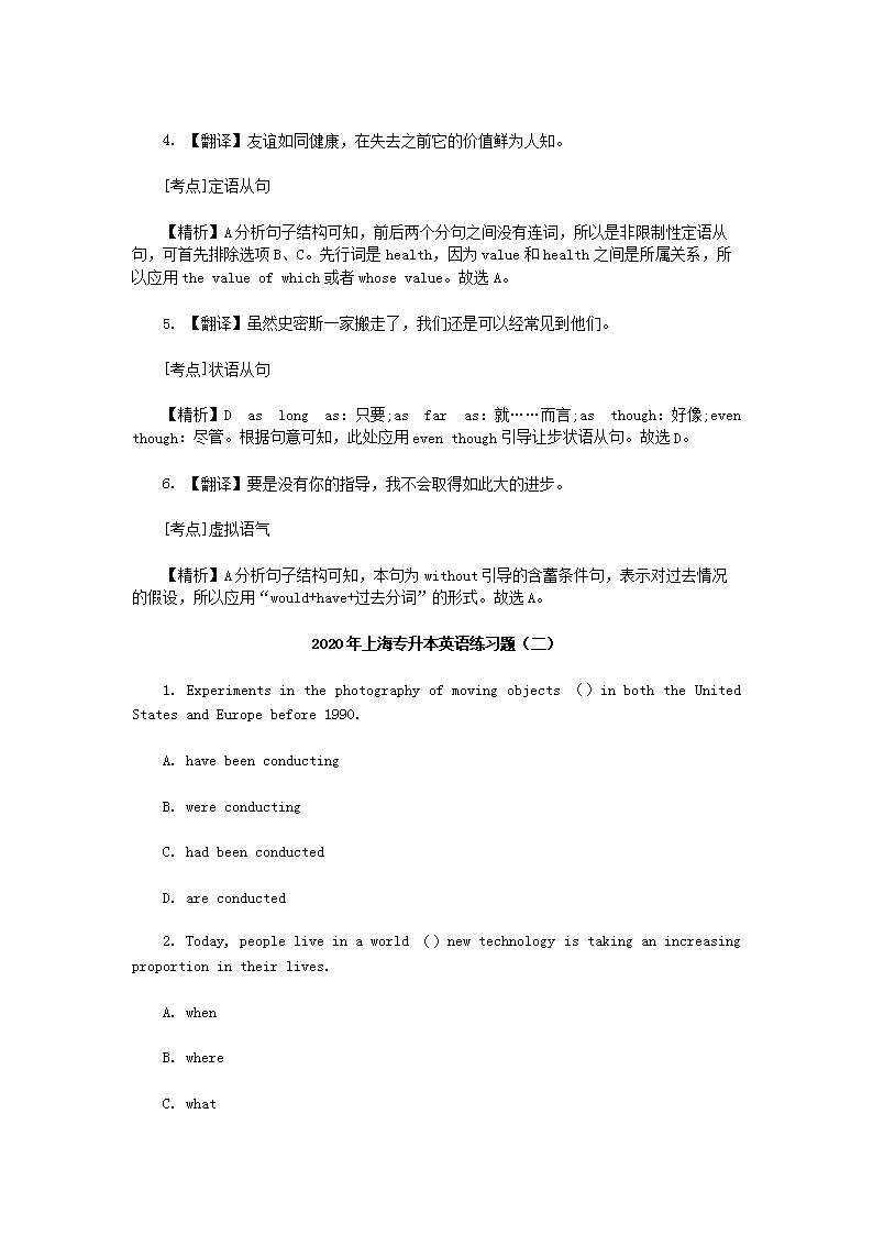 【文档预览】 无忧考网整理发布2020年上海专升本英语练习题三套(Word版),前五页预览如下: