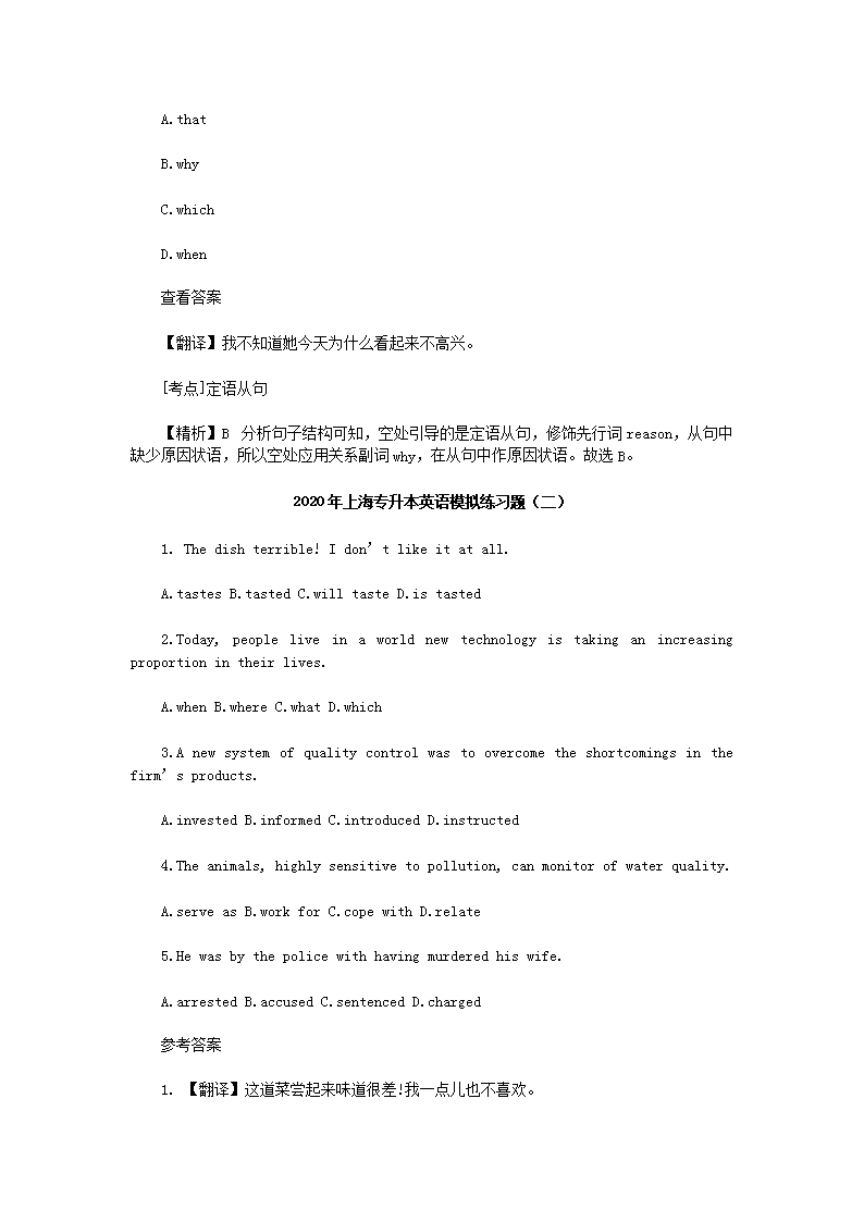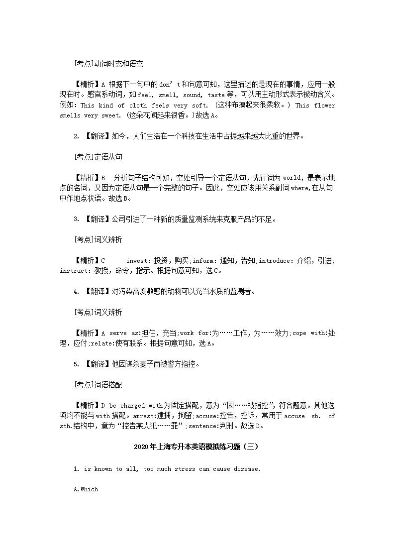 【文档名称】 2020年上海专升本英语模拟练习题三套(Word版).doc