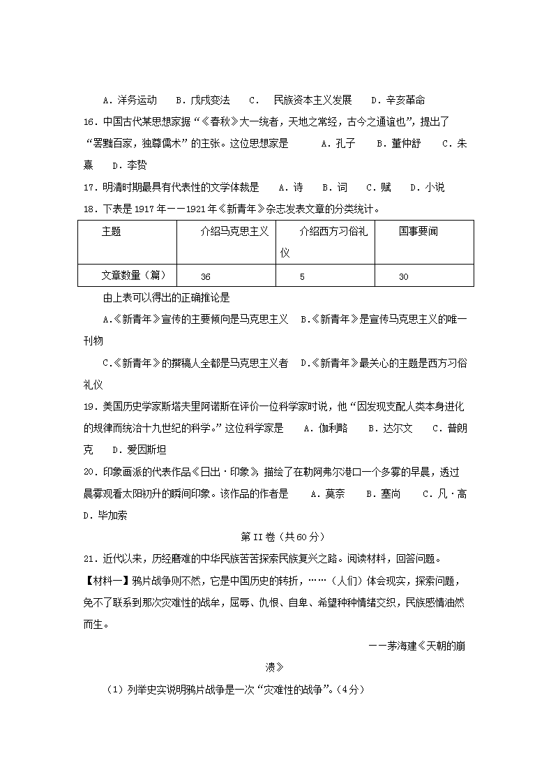 【文档名称】 2013年山东普通高中会考历史真题及答案(Word版).doc