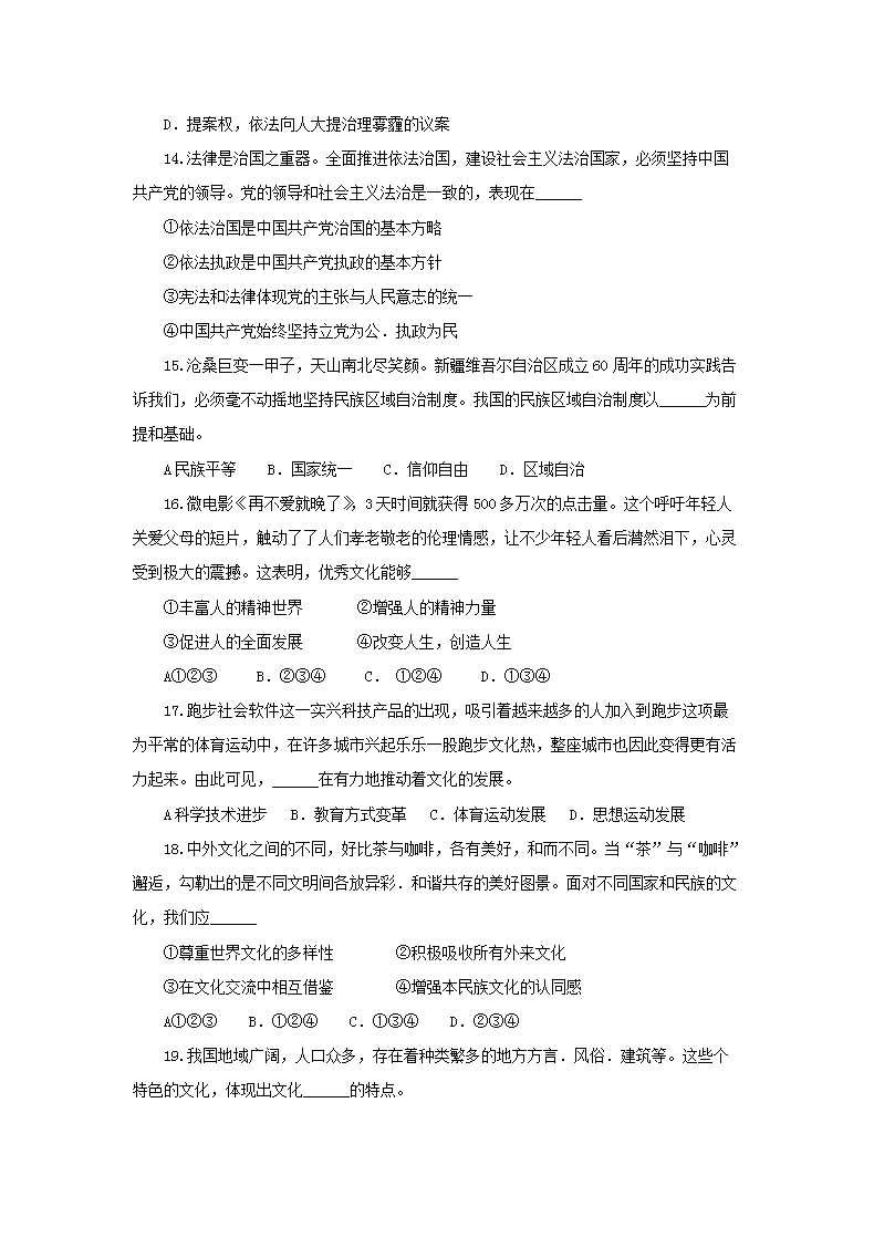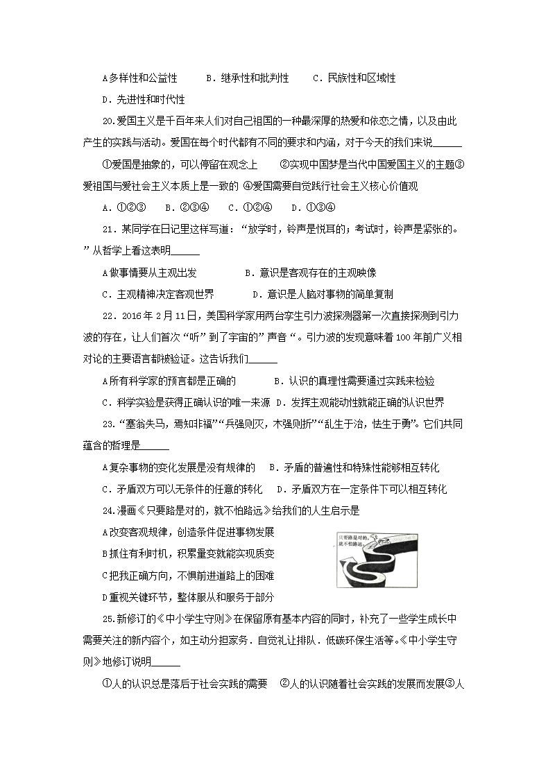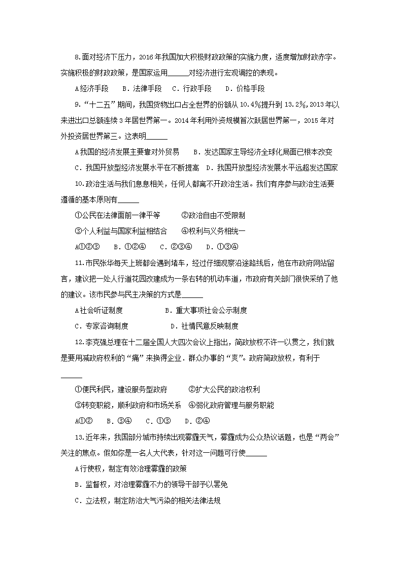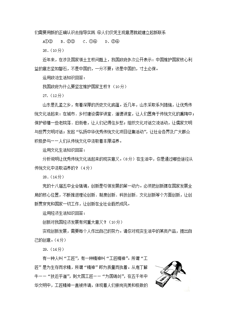 【文档名称】 2016年山东普通高中会考政治真题及答案(Word版).doc