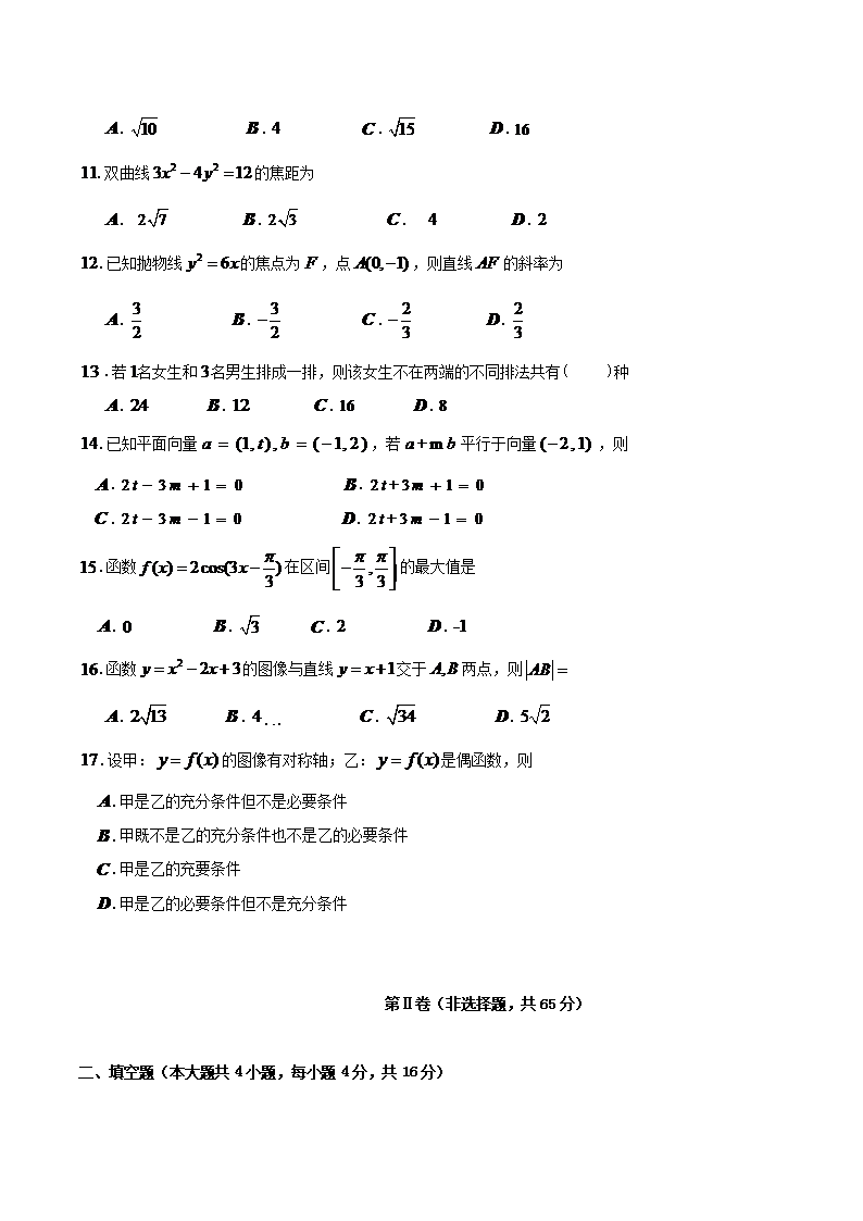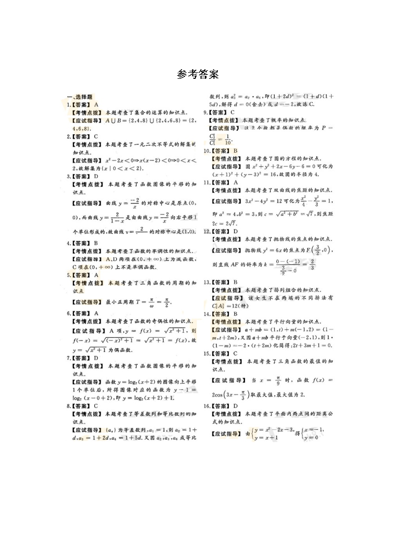 【文档名称】 2018年广西成人高考高起点数学(理)真题及答案(Word版).doc