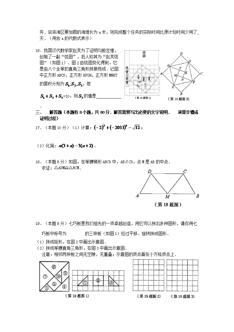 【文档预览】 无忧考网整理发布2011浙江省温州市中考数学真题及答案(Word版),前五页预览如下: