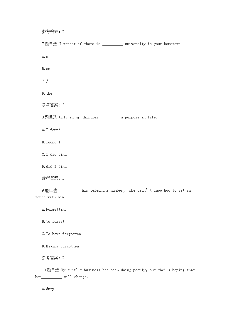【文档名称】 2015年甘肃成人高考专升本英语真题及答案(Word版).doc