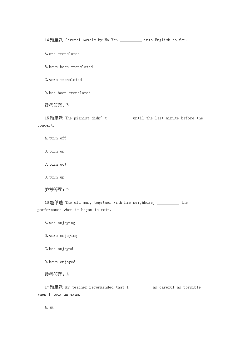 【文档预览】 无忧考网整理发布2015年甘肃成人高考专升本英语真题及答案(Word版),前五页预览如下: