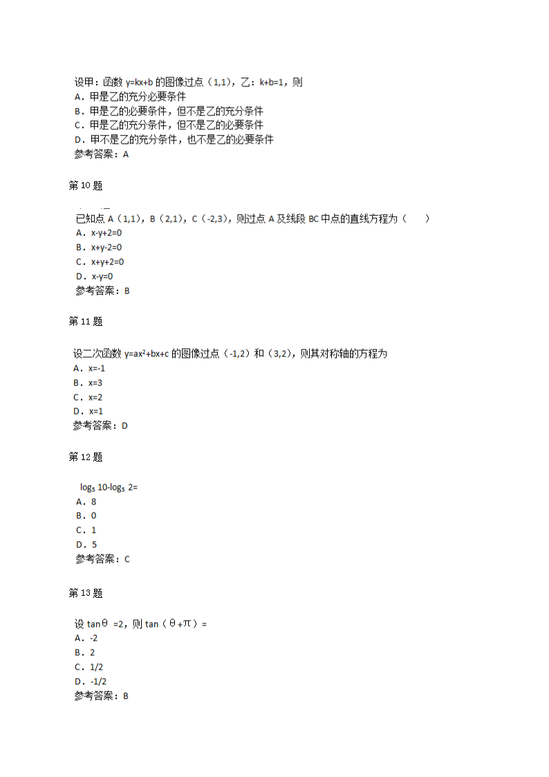 【文档名称】 2015年甘肃成人高考高起点数学(理)真题及答案(Word版).doc