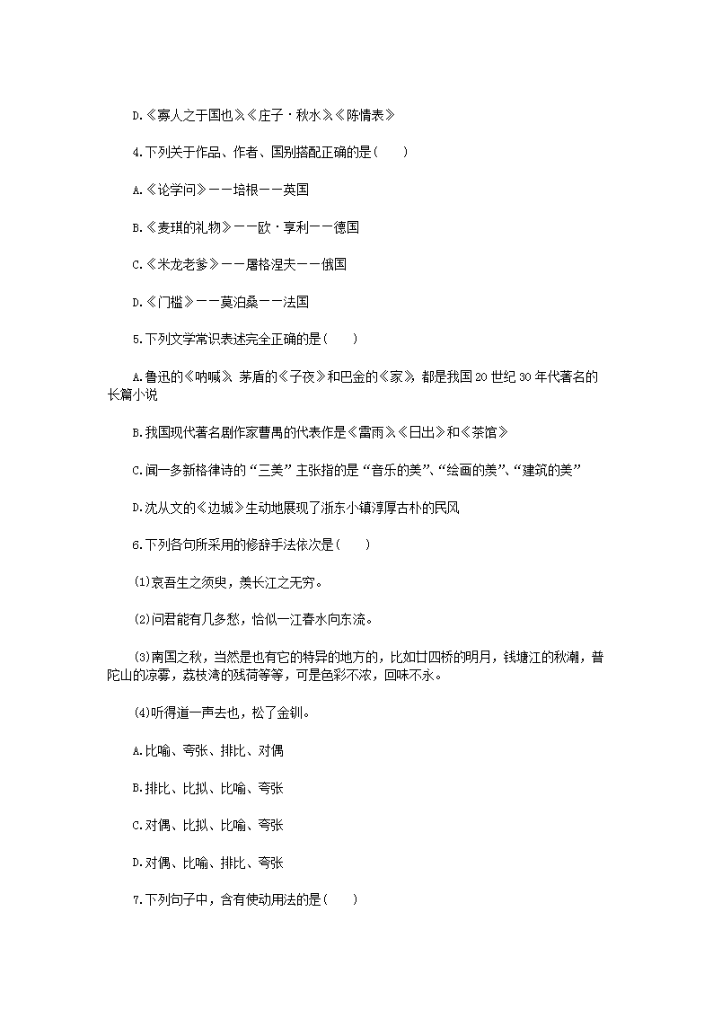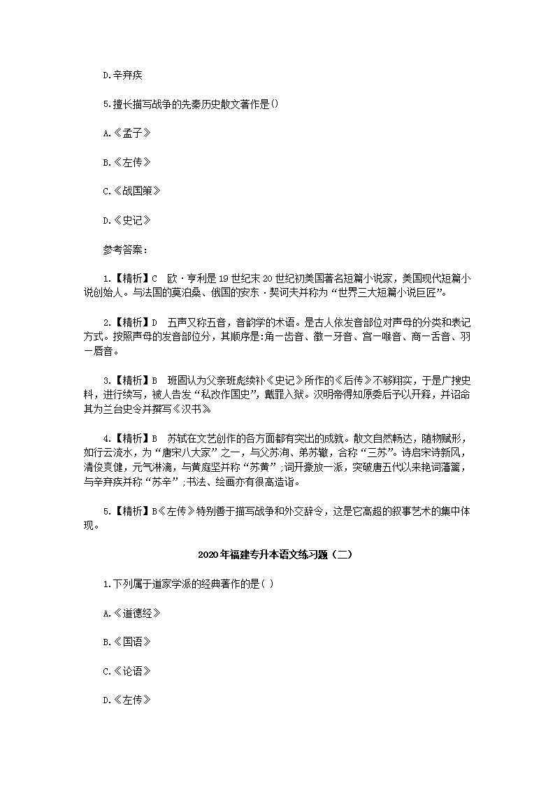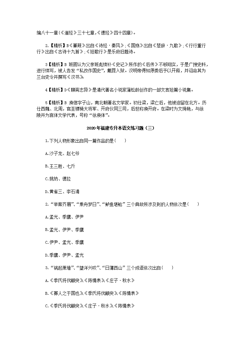 【文档名称】 2020年福建专升本语文练习题三套(Word版).doc