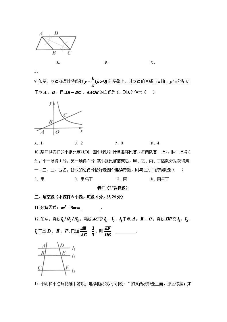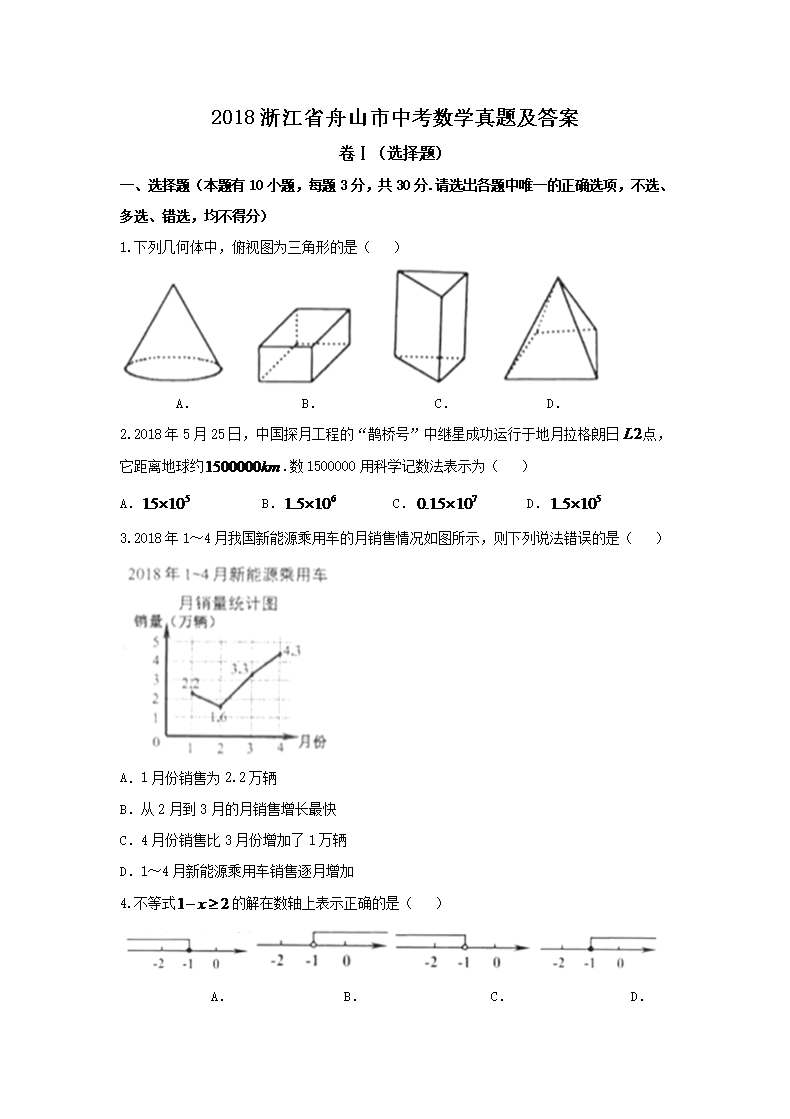 【文档名称】 2018浙江省舟山市中考数学真题及答案(Word版).doc