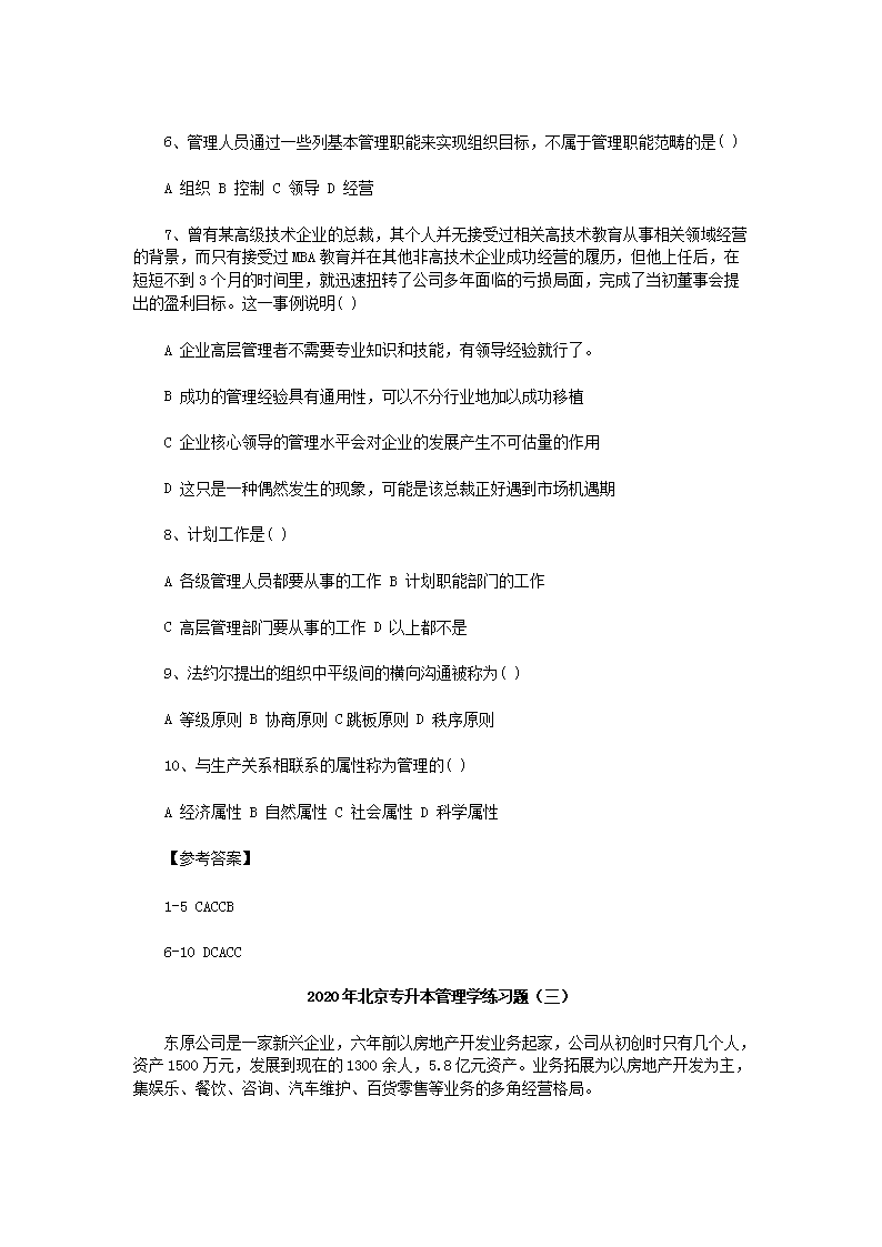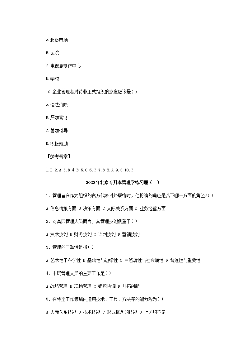 【文档预览】 无忧考网整理发布2020年北京专升本管理学练习题三套(Word版),前五页预览如下: