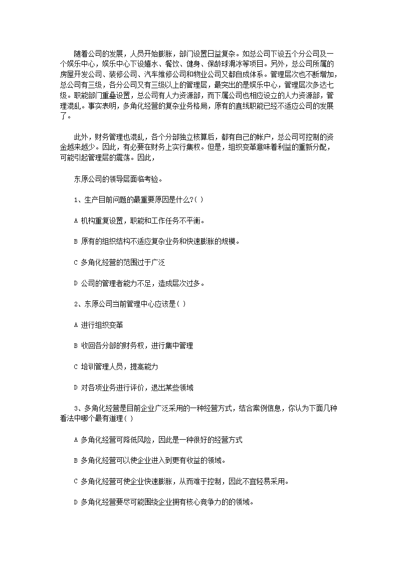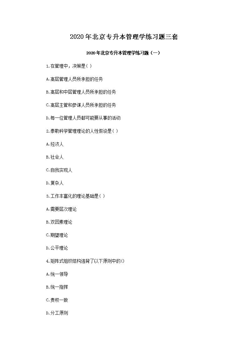 【文档名称】 2020年北京专升本管理学练习题三套(Word版).doc