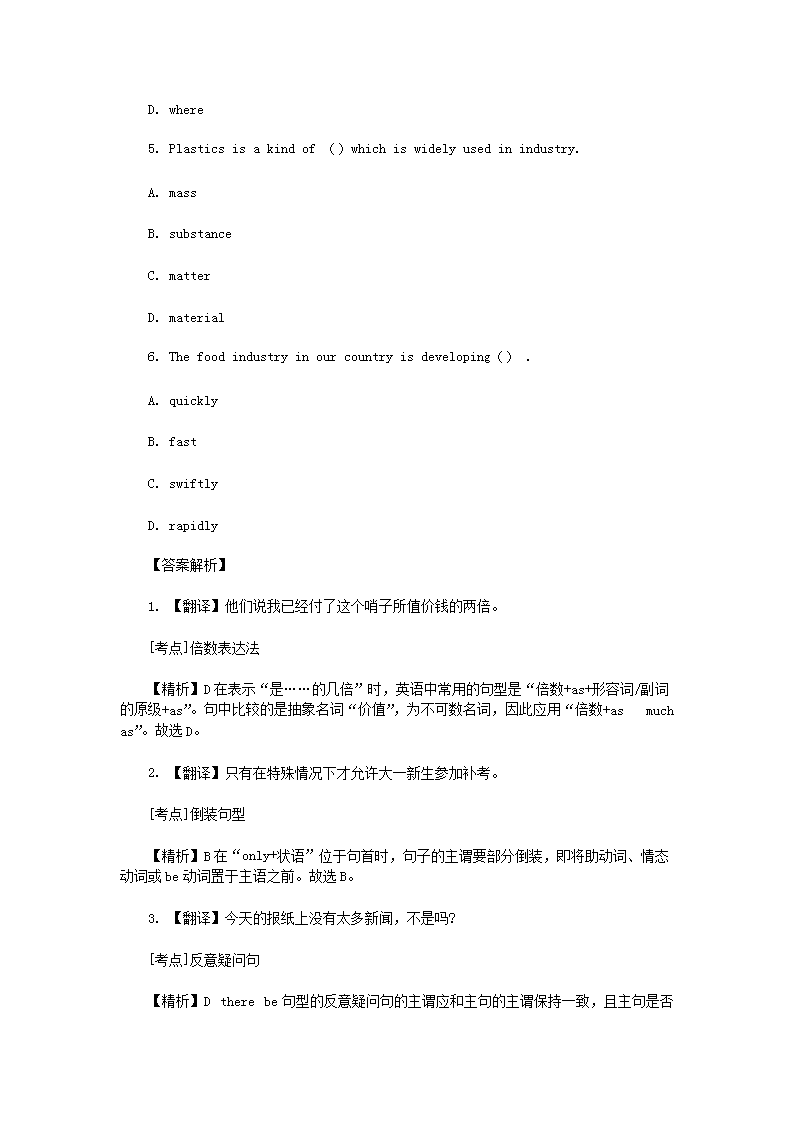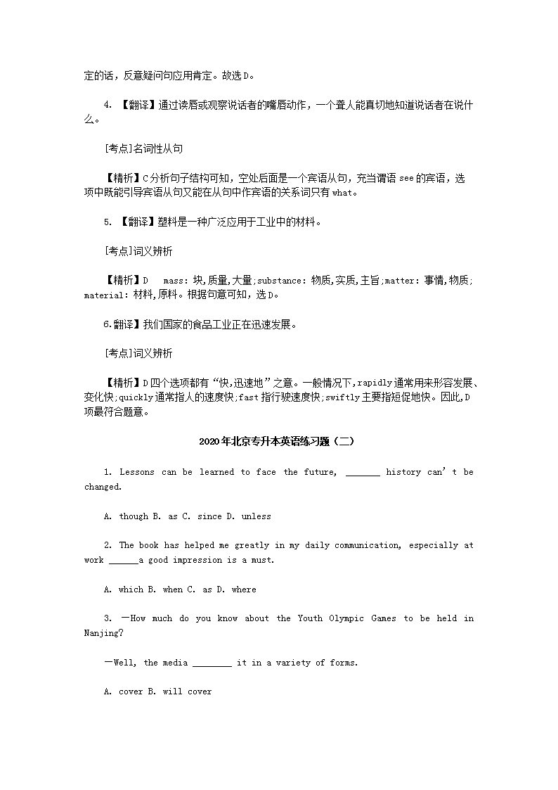 【文档名称】 2020年北京专升本英语练习题三套(Word版).doc