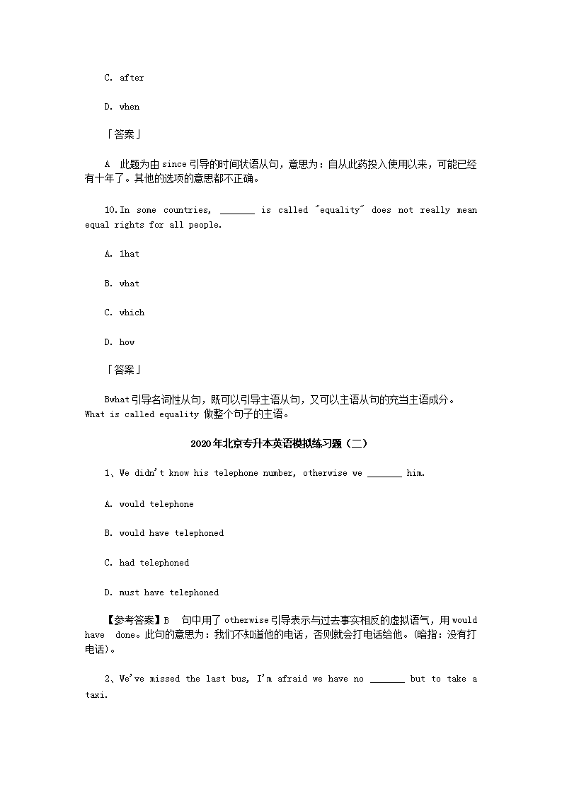 【文档名称】 2020年北京专升本英语模拟练习题三套(Word版).doc