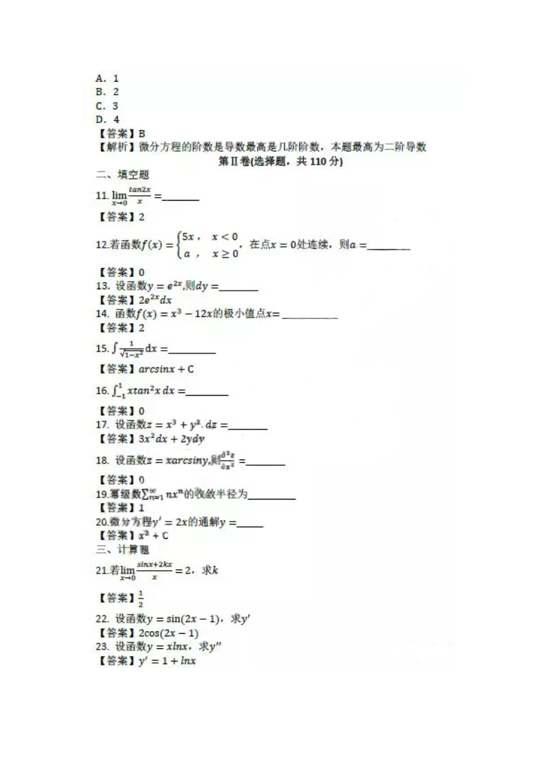【文档名称】 2019年甘肃成人高考专升本高等数学一真题及答案(Word版).doc