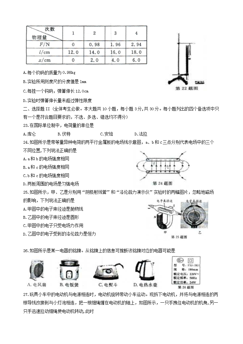 【文档名称】 2014年浙江普通高中会考物理真题及答案(Word版).doc