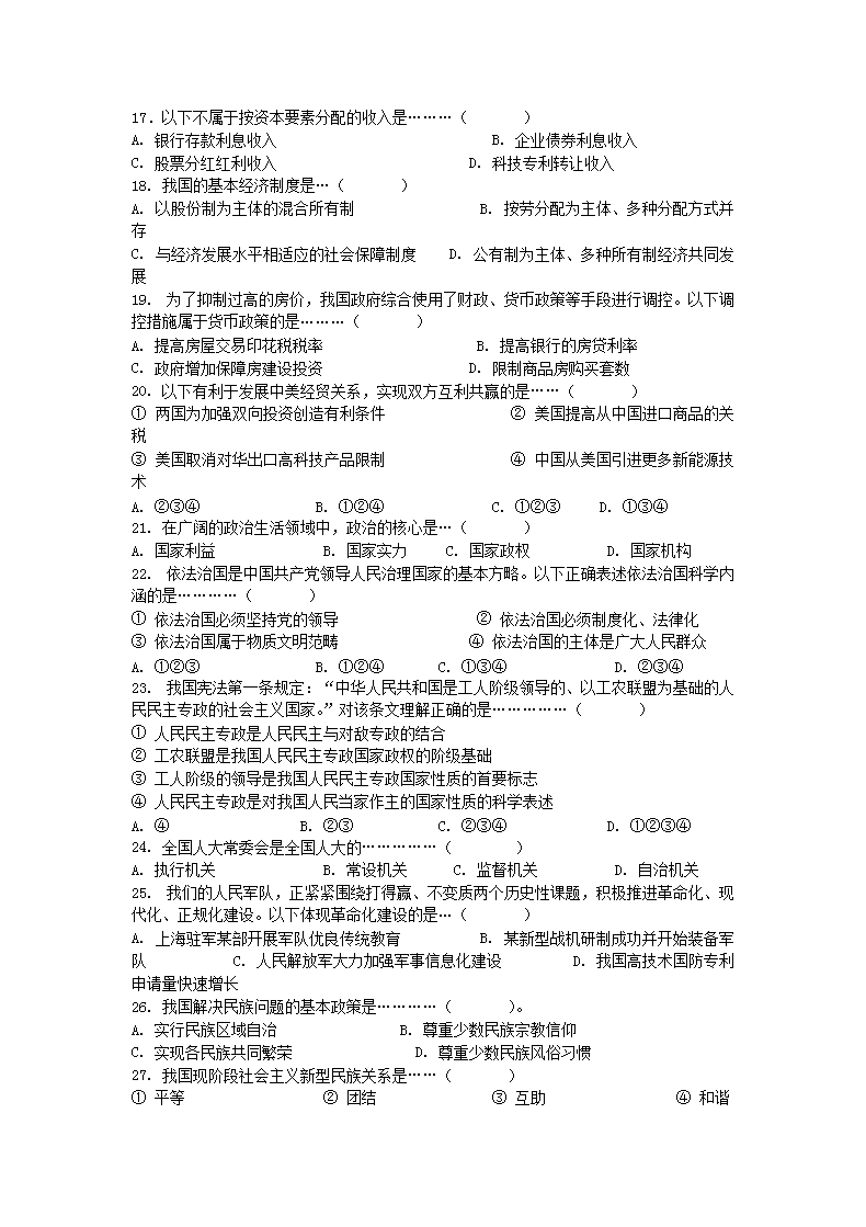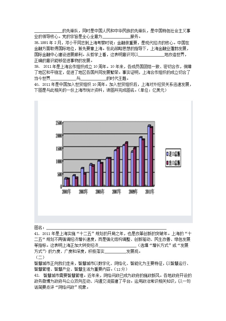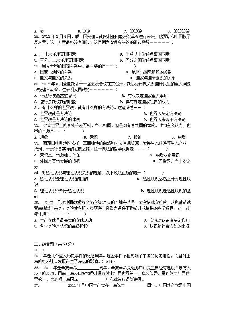 【文档名称】 2012年上海普通高中会考政治真题及答案(Word版).doc