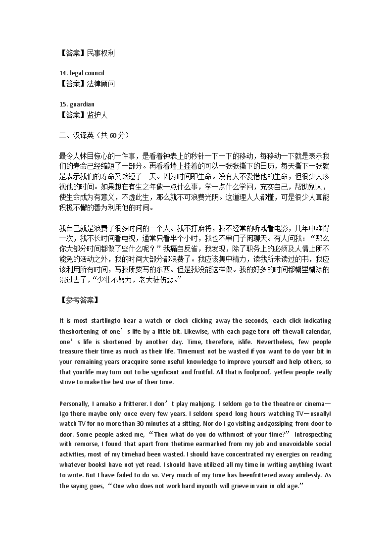 【文档名称】 2015年湖南长沙理工大学外国语学院英语翻译基础考研真题及答案(Word版).doc