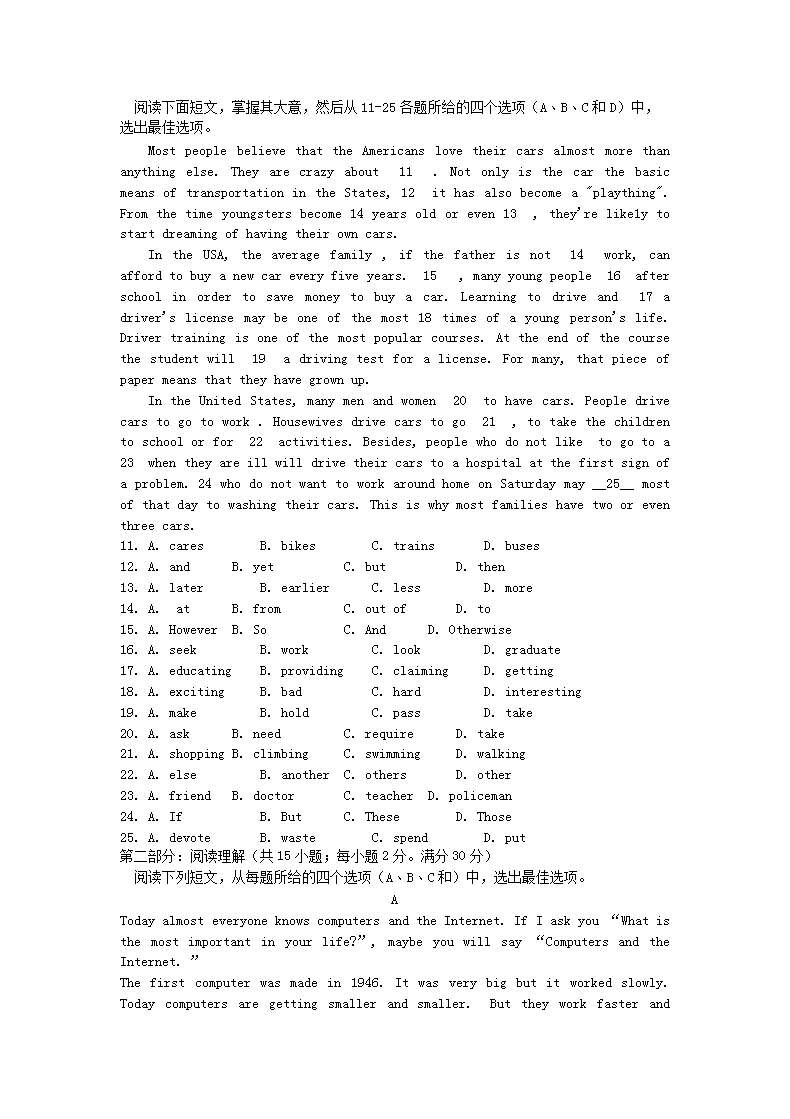 【文档预览】 无忧考网整理发布2010年山东普通高中会考英语真题及答案(Word版),前五页预览如下: