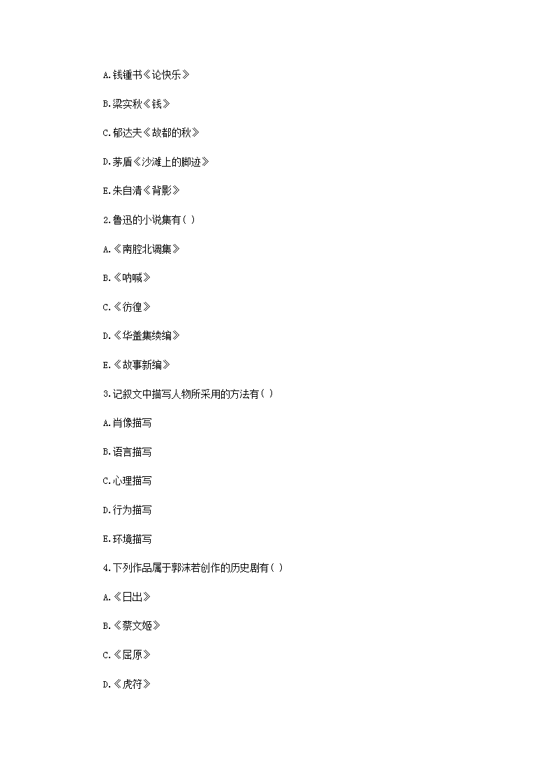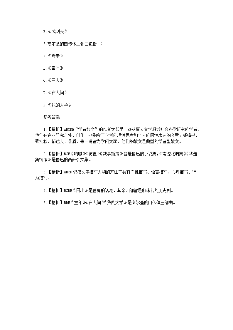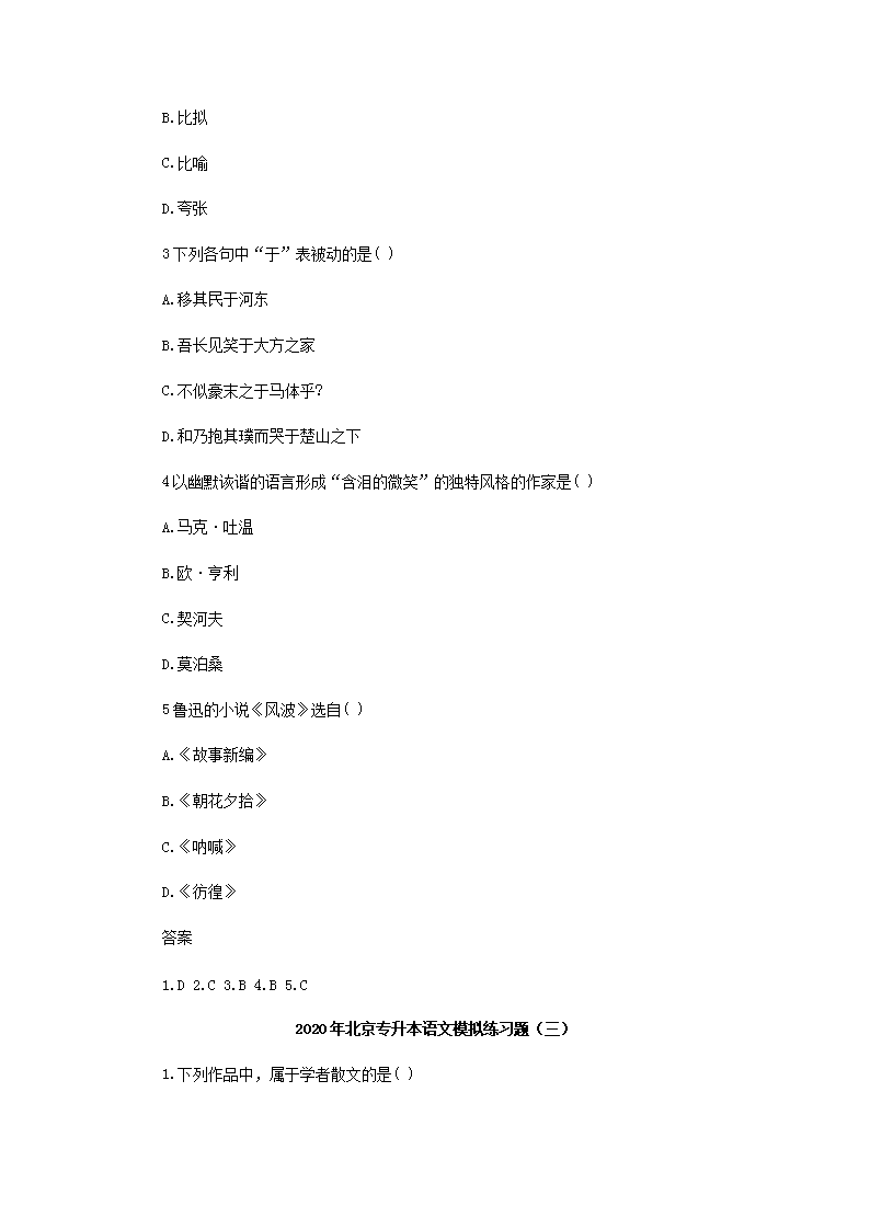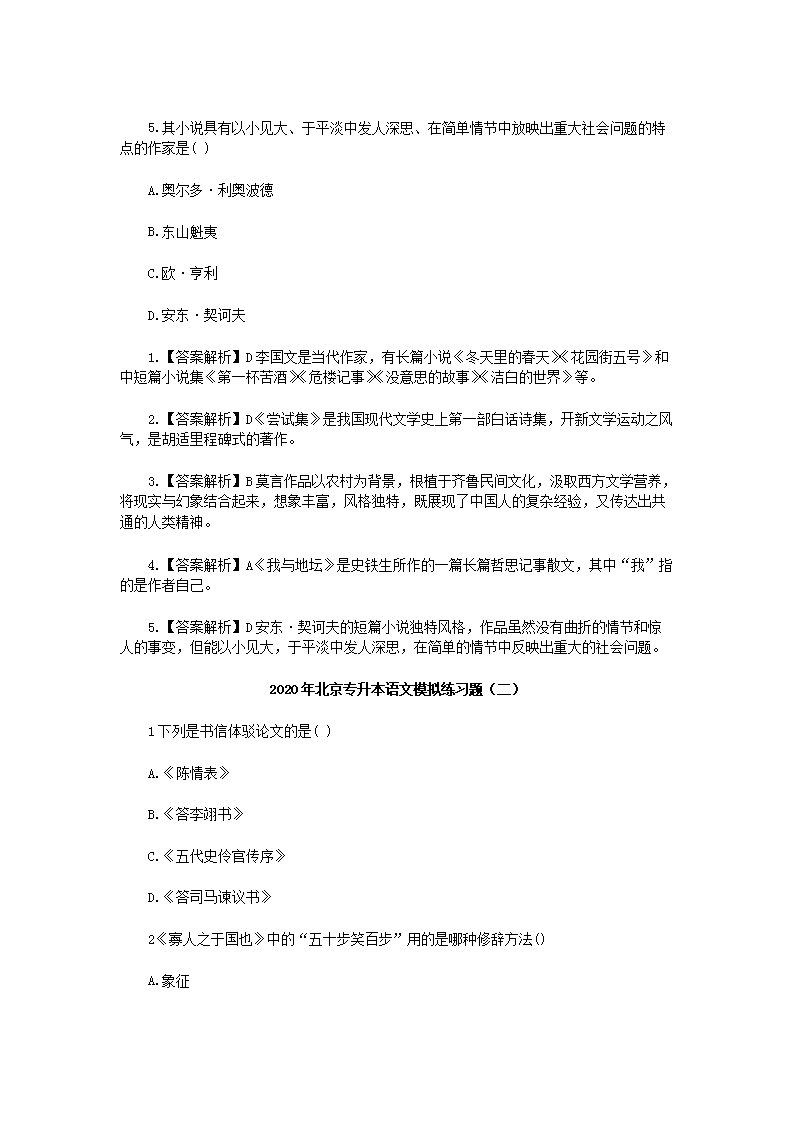【文档名称】 2020年北京专升本语文模拟练习题三套(Word版).doc