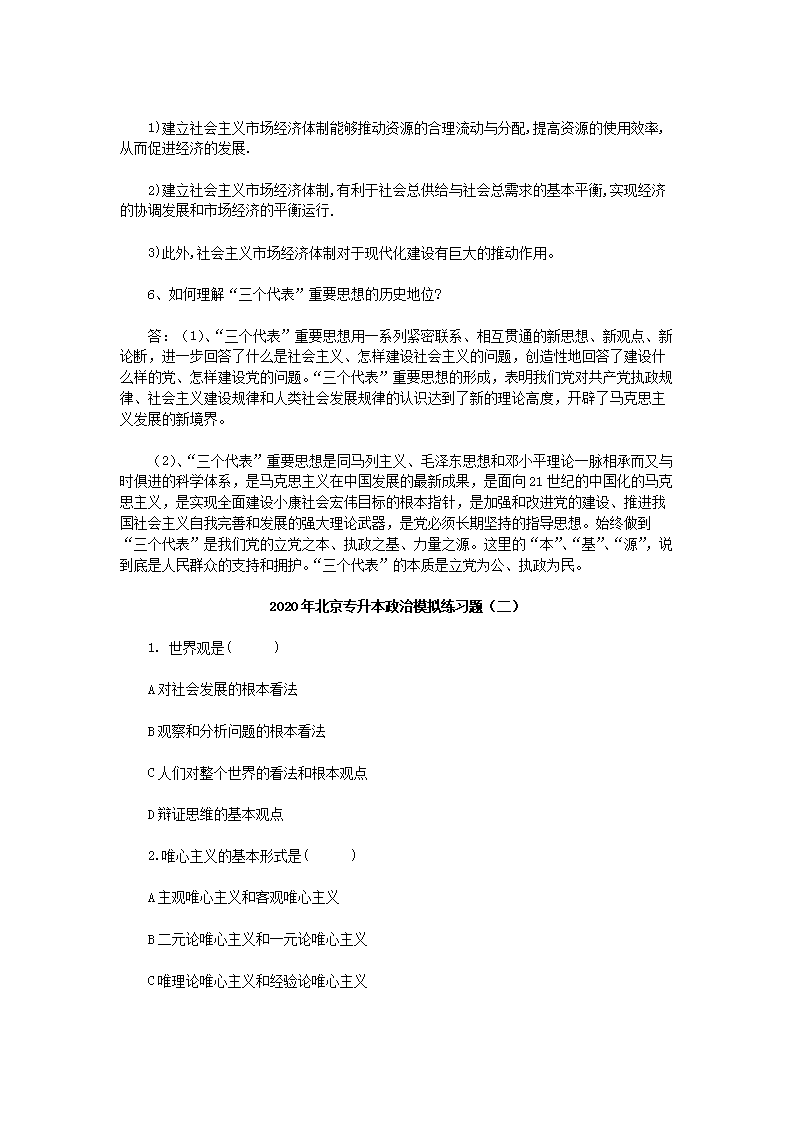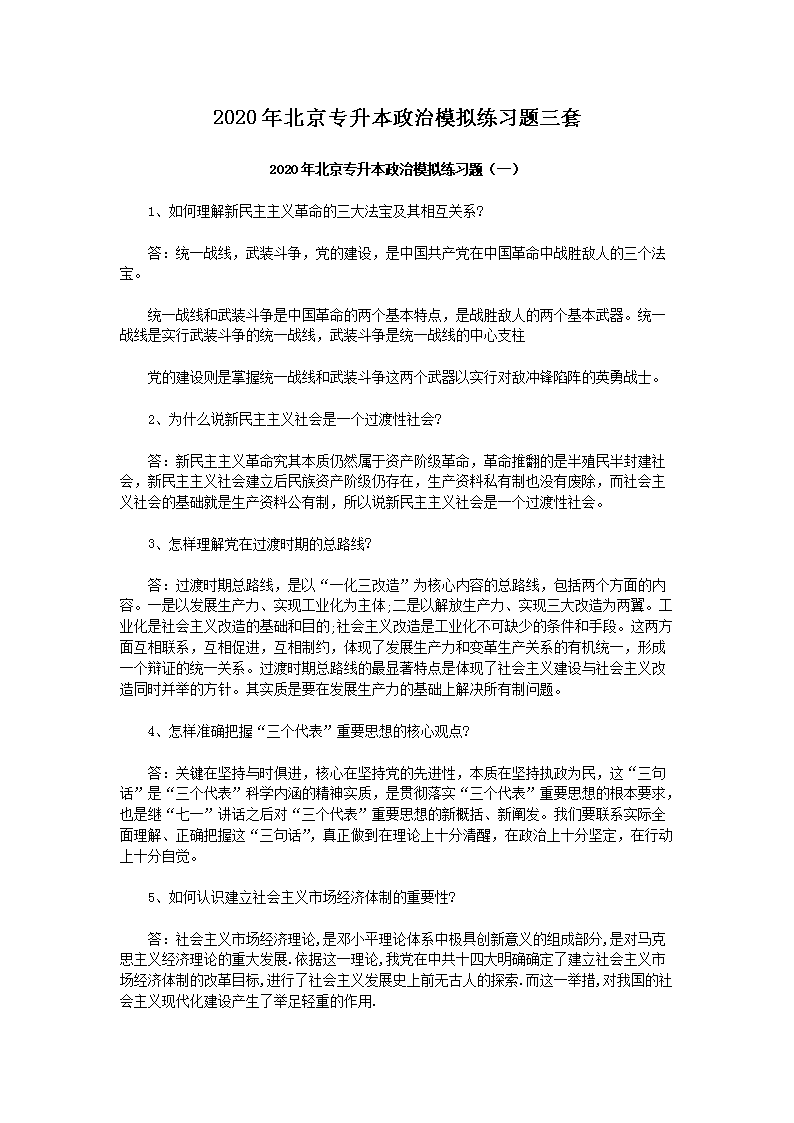 【文档名称】 2020年北京专升本政治模拟练习题三套(Word版).doc