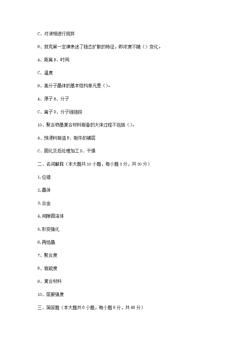 【文档名称】 2016年浙江宁波大学材料科学基础考研真题(Word版).doc