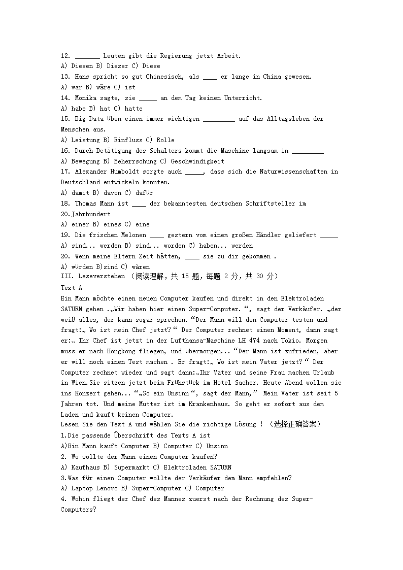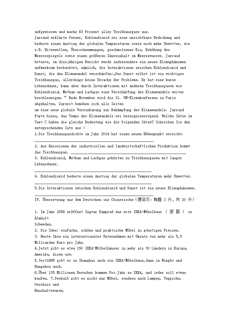 【文档名称】 2016年浙江宁波大学二外德语考研真题(Word版).doc