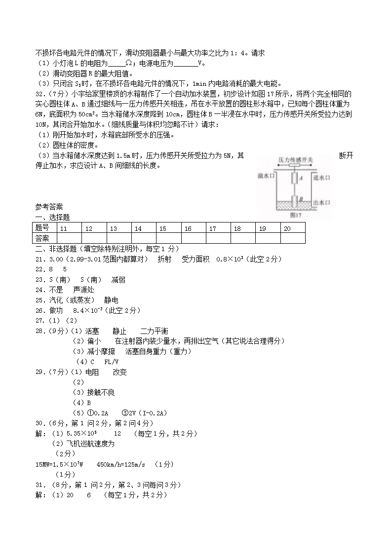 【文档名称】 2018年湖北省咸宁市中考物理真题及答案(Word版).doc