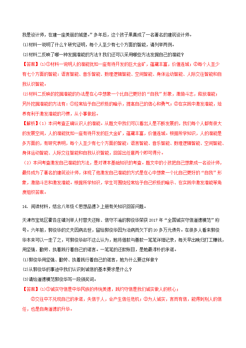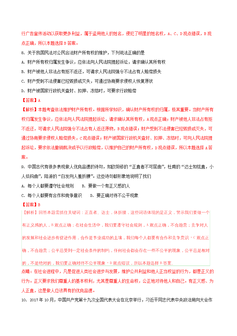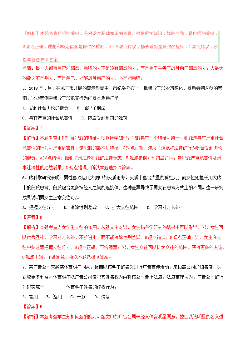 【文档名称】 2018年湖北省咸宁市中考思想品德真题及答案(Word版).doc