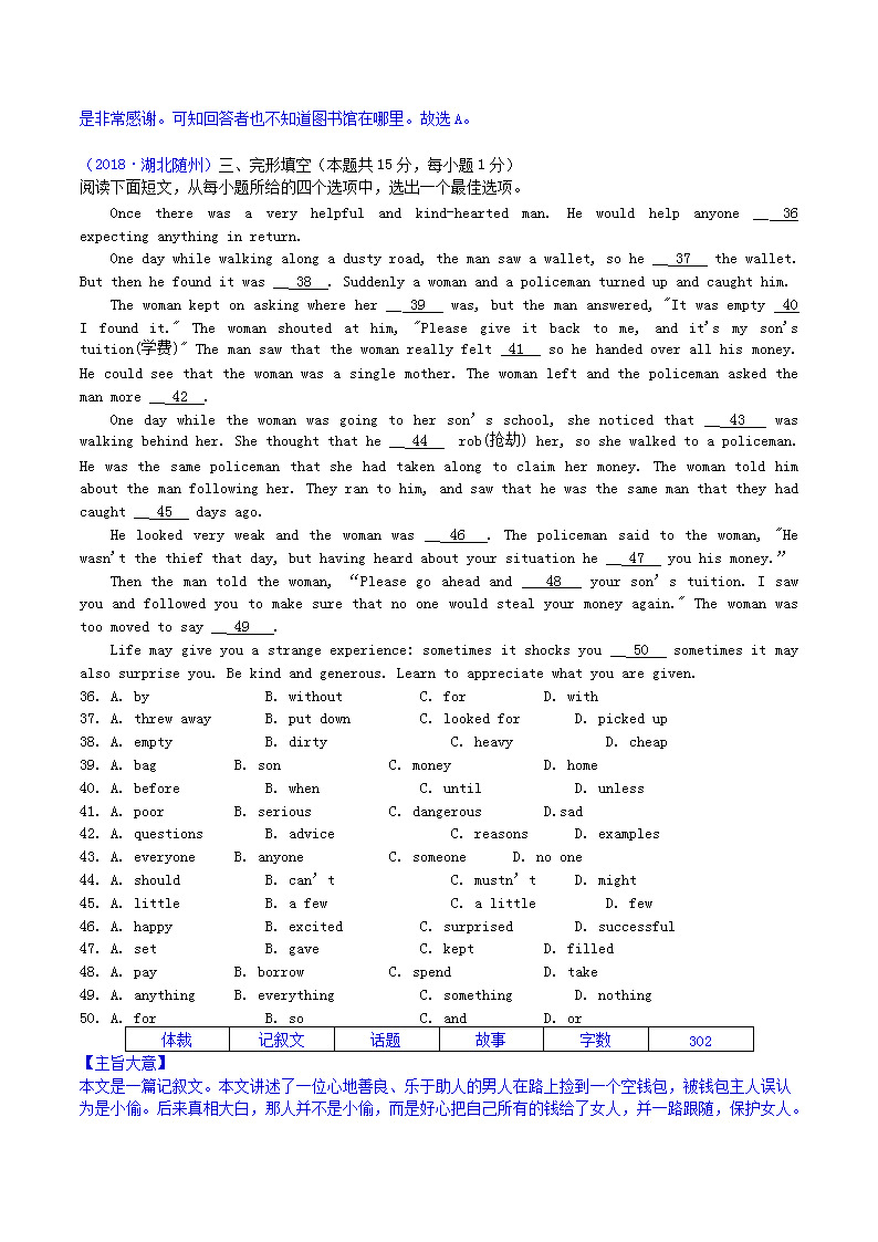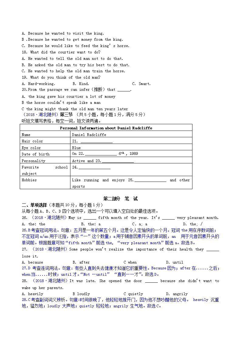 【文档名称】 2018年湖北省随州市中考英语真题及答案(Word版).doc