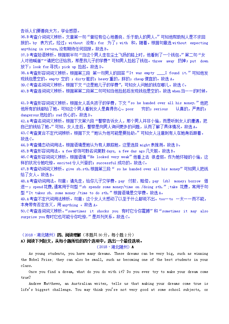 【文档预览】 无忧考网整理发布2018年湖北省随州市中考英语真题及答案(Word版),前五页预览如下: