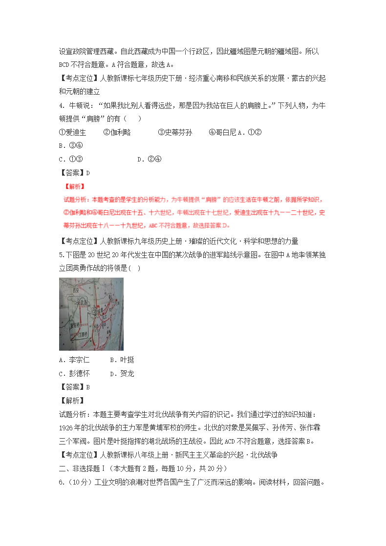 【文档名称】 2016浙江省舟山市中考历史真题及答案(Word版).doc