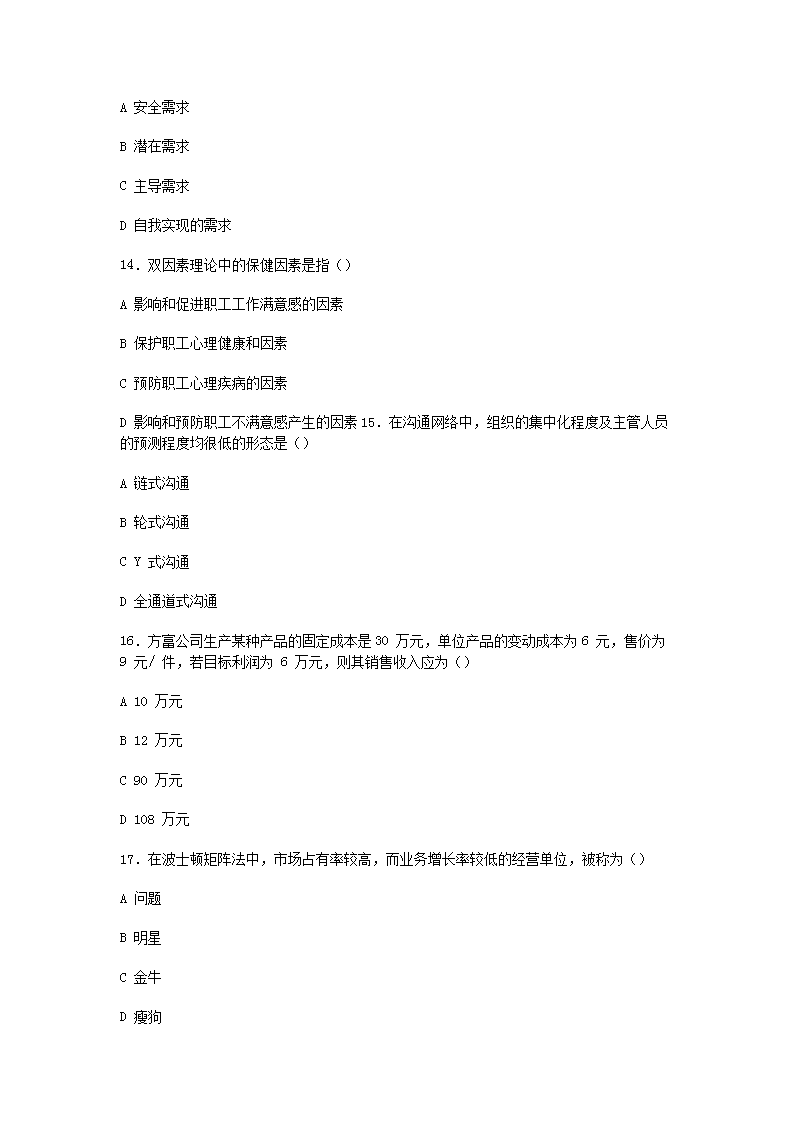 【文档预览】 无忧考网整理发布2004年河南专升本考试管理学真题及答案(Word版),前五页预览如下: