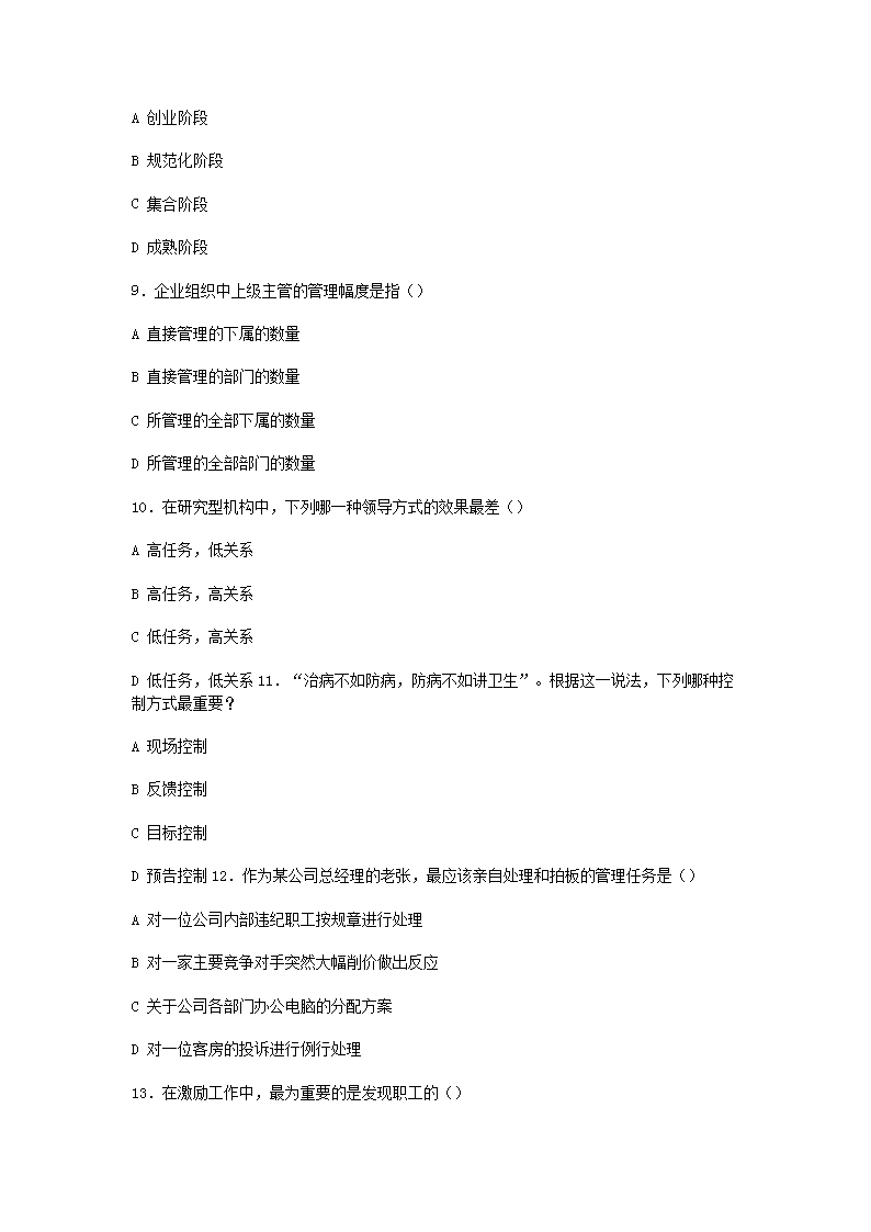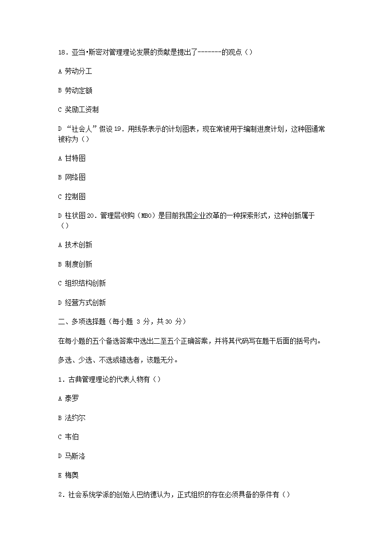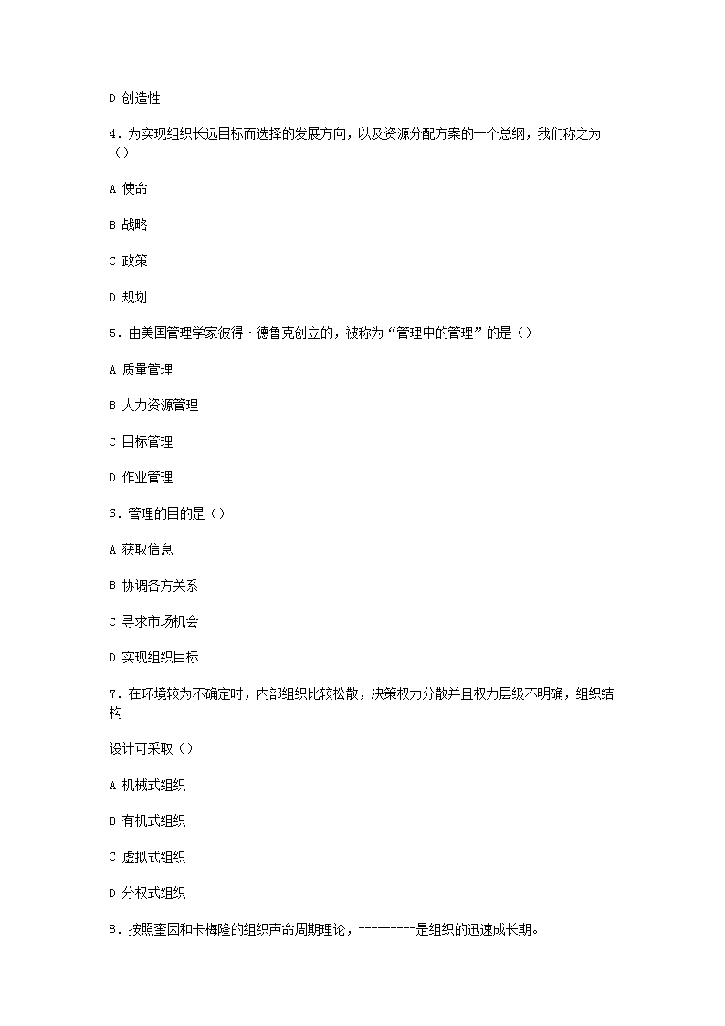 【文档名称】 2004年河南专升本考试管理学真题及答案(Word版).doc