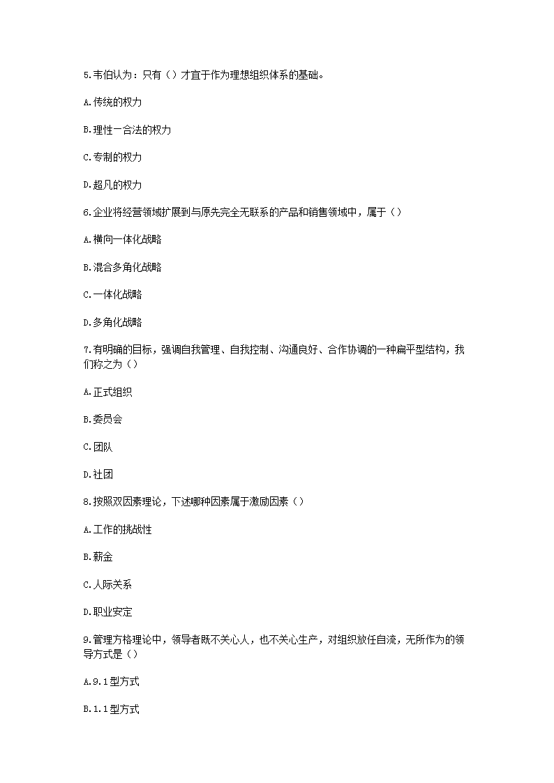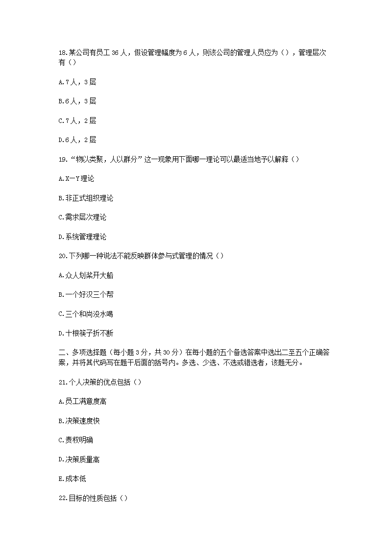 【文档名称】 2005年河南专升本考试管理学真题及答案(Word版).doc