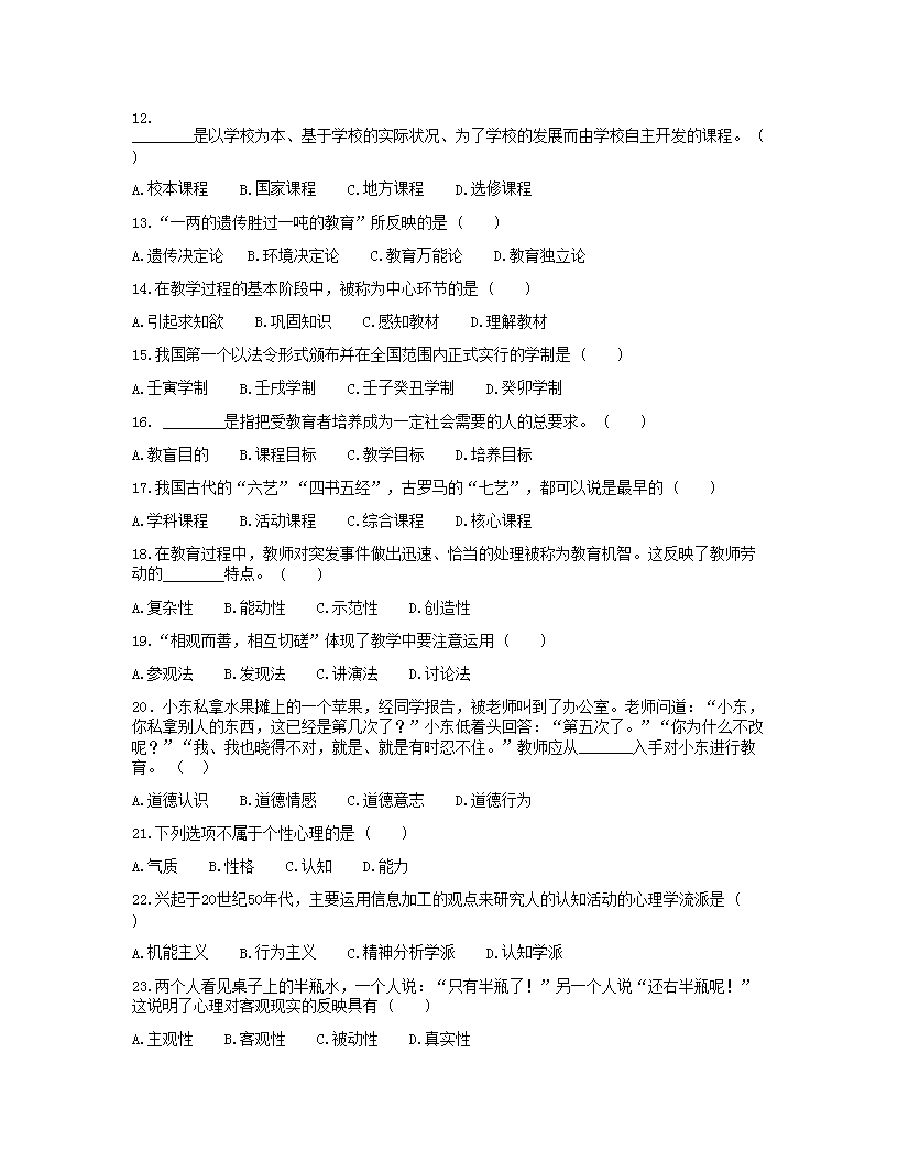 【文档名称】 2015年河南专升本考试教育心理学真题及答案(Word版).doc